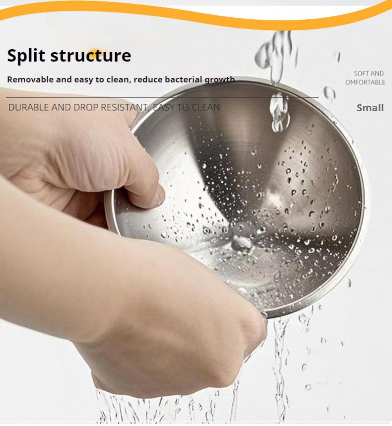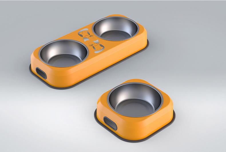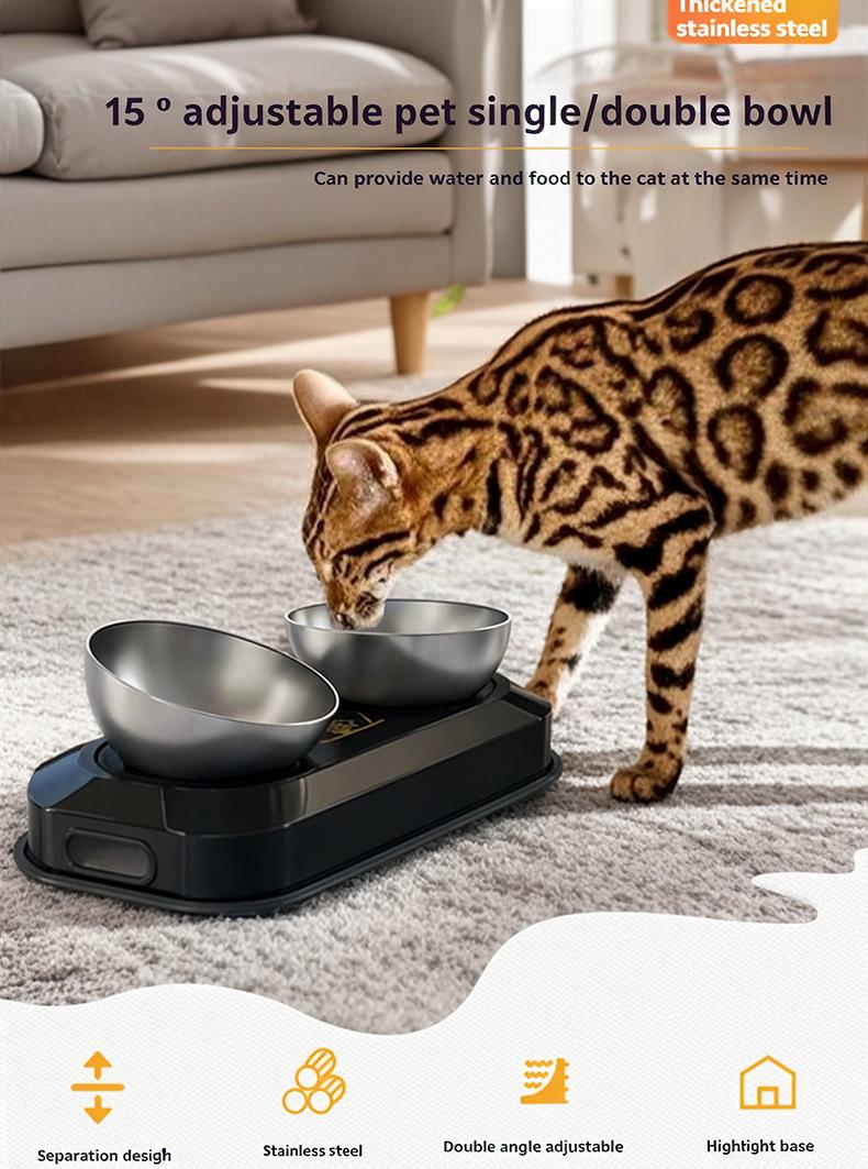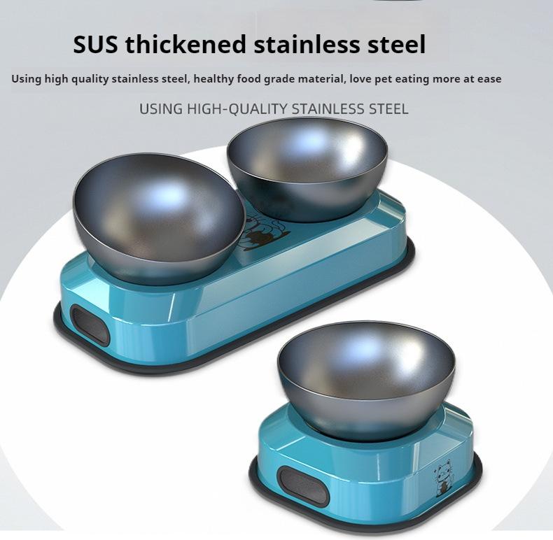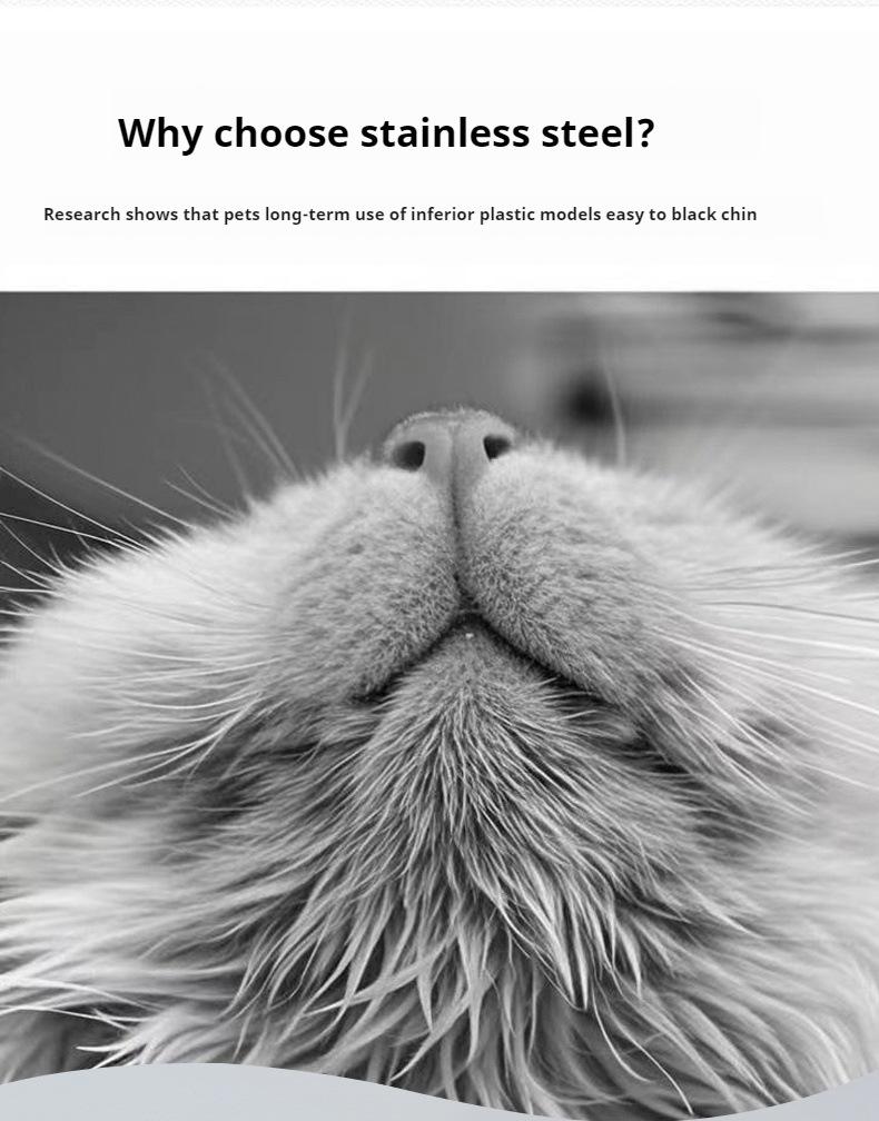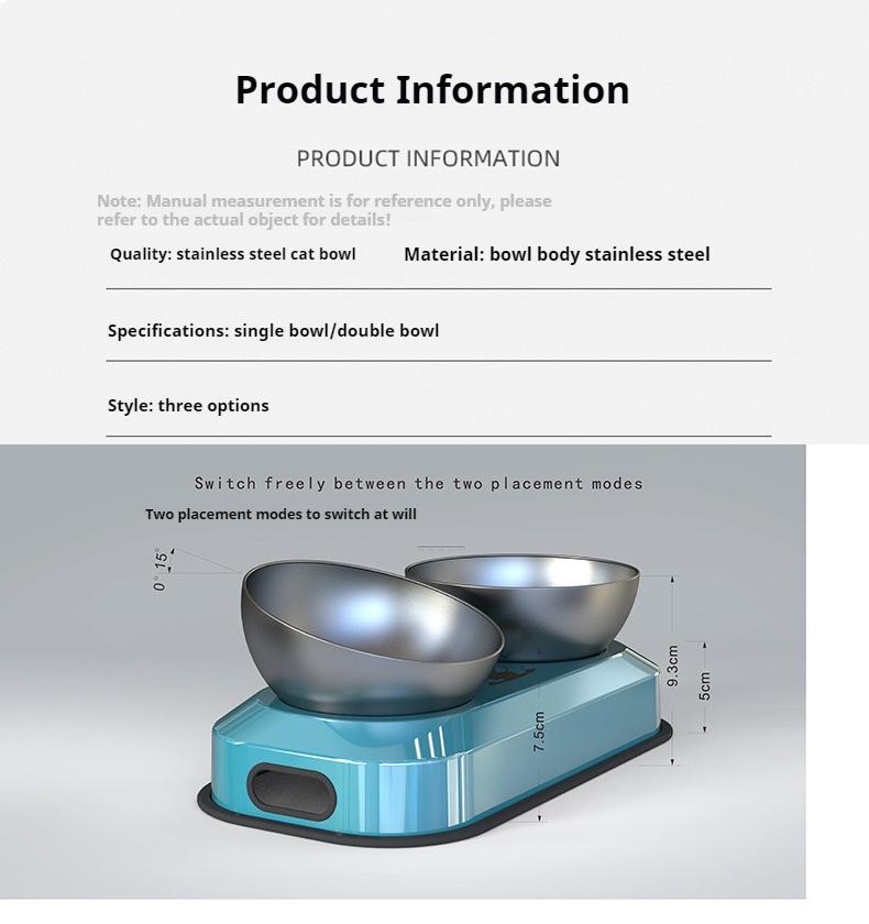 Tazón doble para mascotas de acero inoxidable de una pieza, utensilios para comida para gatos y perros, tazón para beber, alimentador de barba ajustable, venta al por mayor