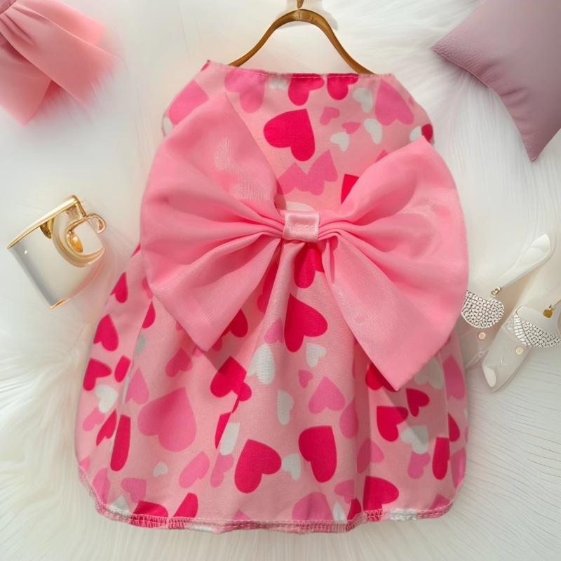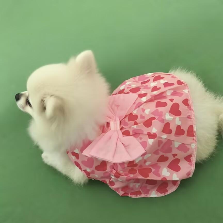 Ropa Nueva para Mascotas de San Valentín Ropa para Perro Gato Estampado de Corazón Lazo Ropa Falda Estilo Princesa