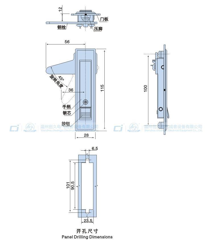 Cerradura eléctrica de caja MS728-1-2 cerradura plana cerradura de caja de distribución de energía cerradura de lengüeta giratoria cerradura de gabinete cerradura plana de gabinete máquina