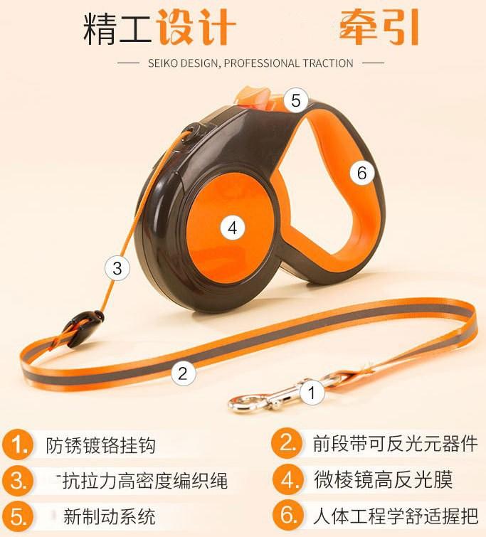 Correa Reflectante Automática Retráctil: Más tranquilidad para paseos nocturnos con perros Diseño reflectante en el cuerpo + diseño reflectante al final de la correa