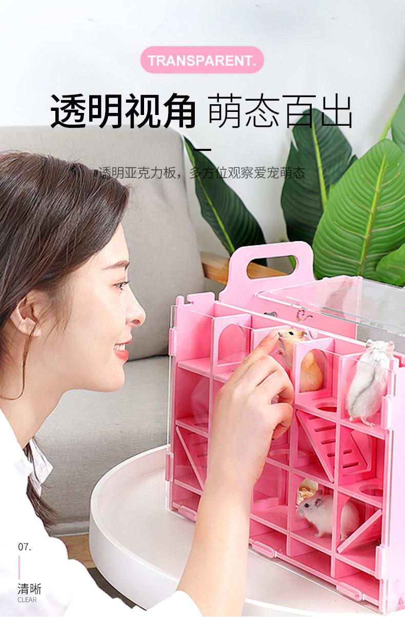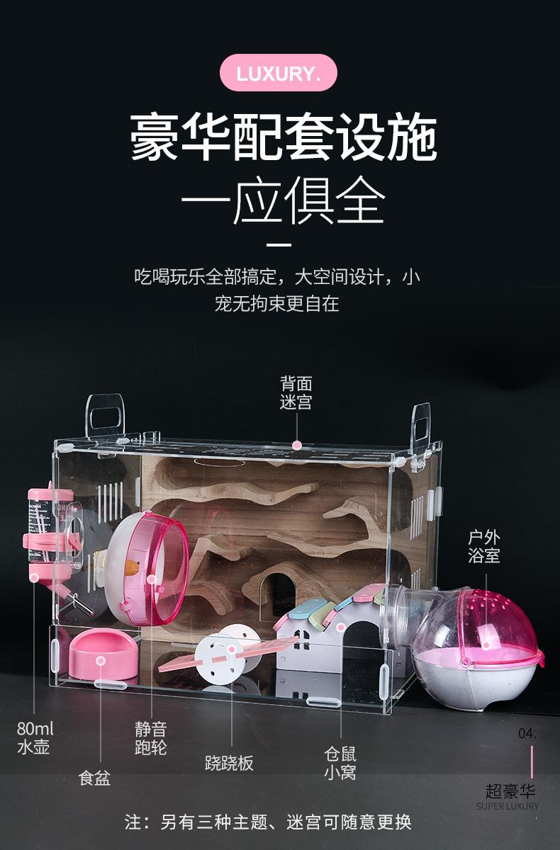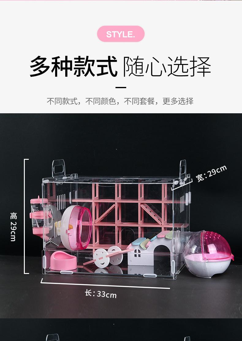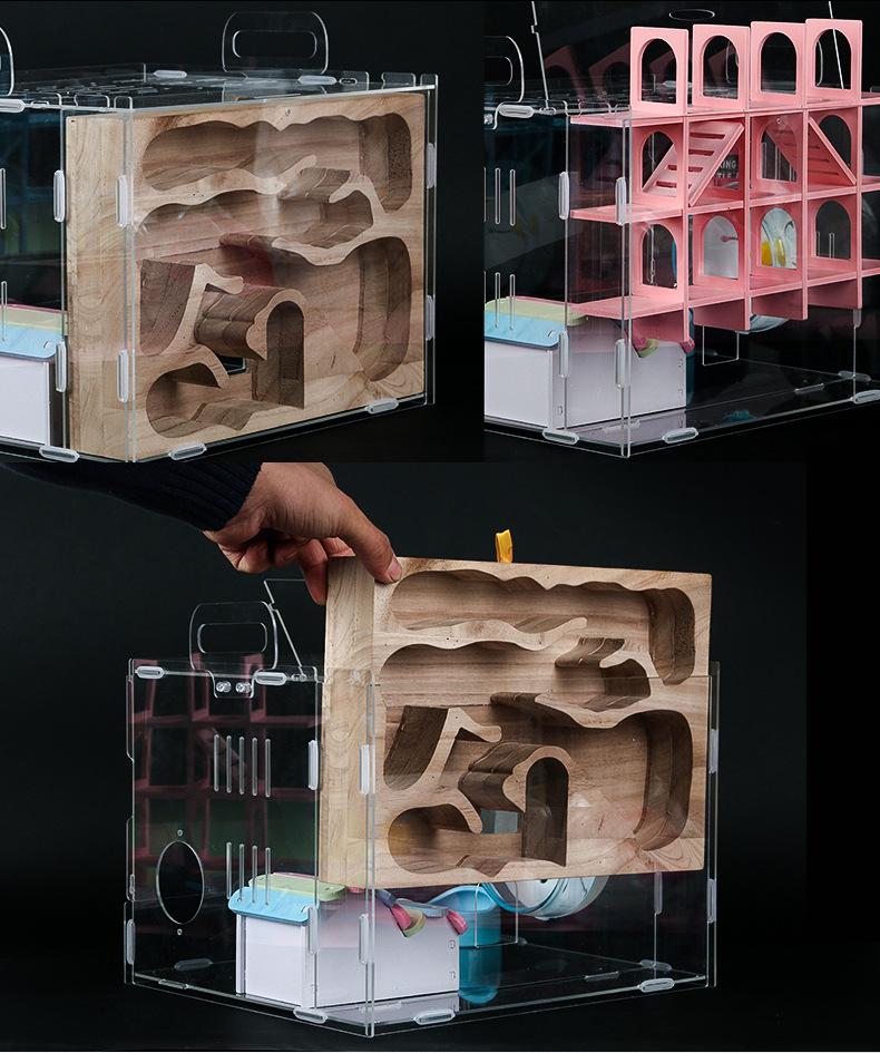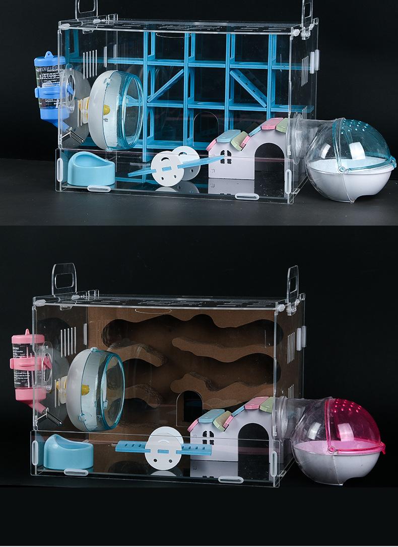 Xingxingwen Jaula para Hámster Jaula Acrílica Oso Dorado Doble Capa Extra Grande Transparente Suministros para el Hogar Juguetes