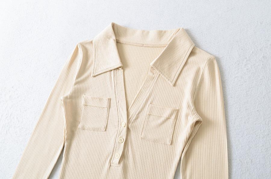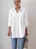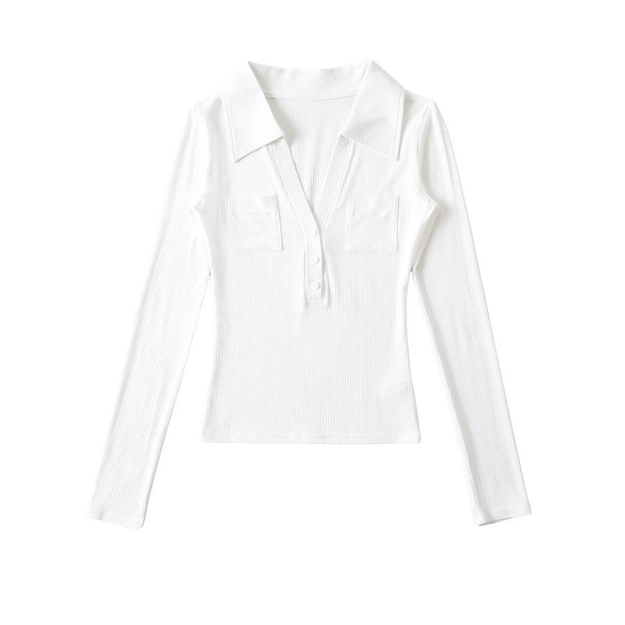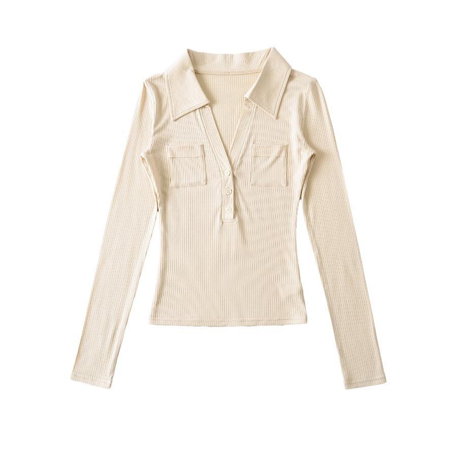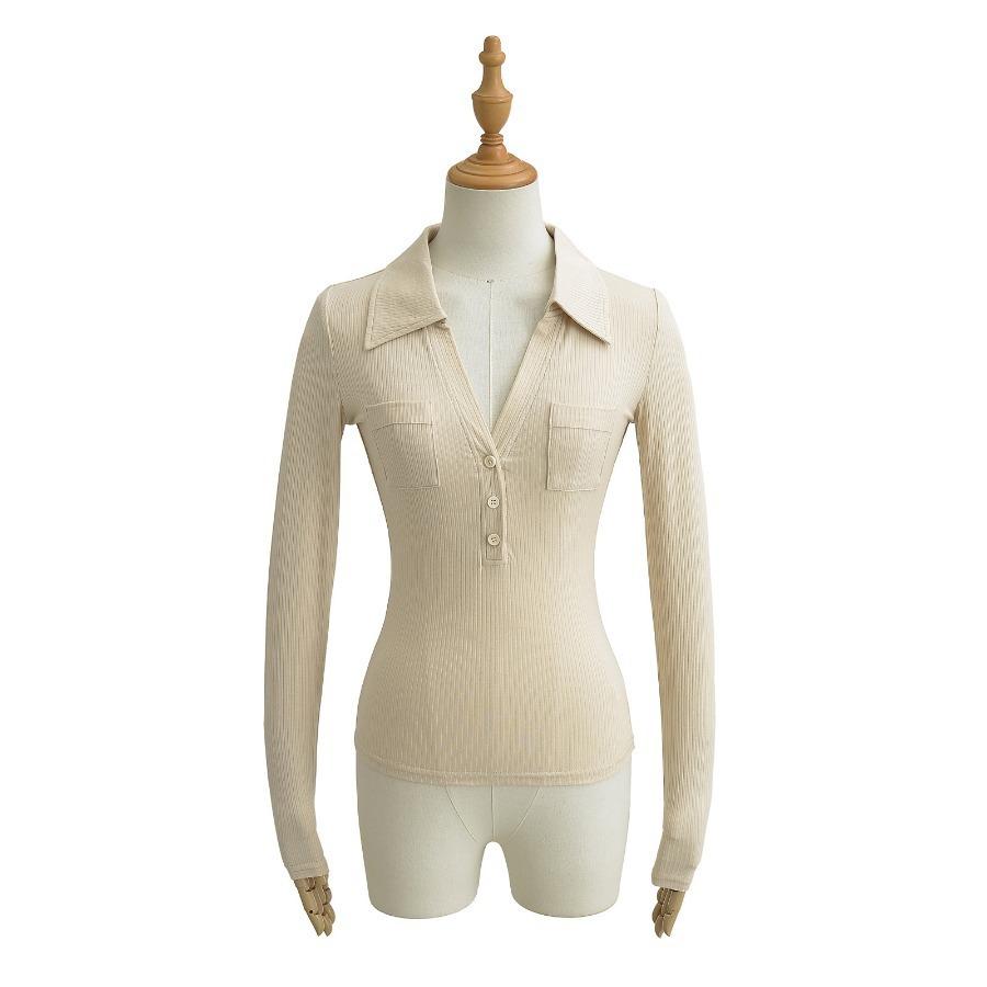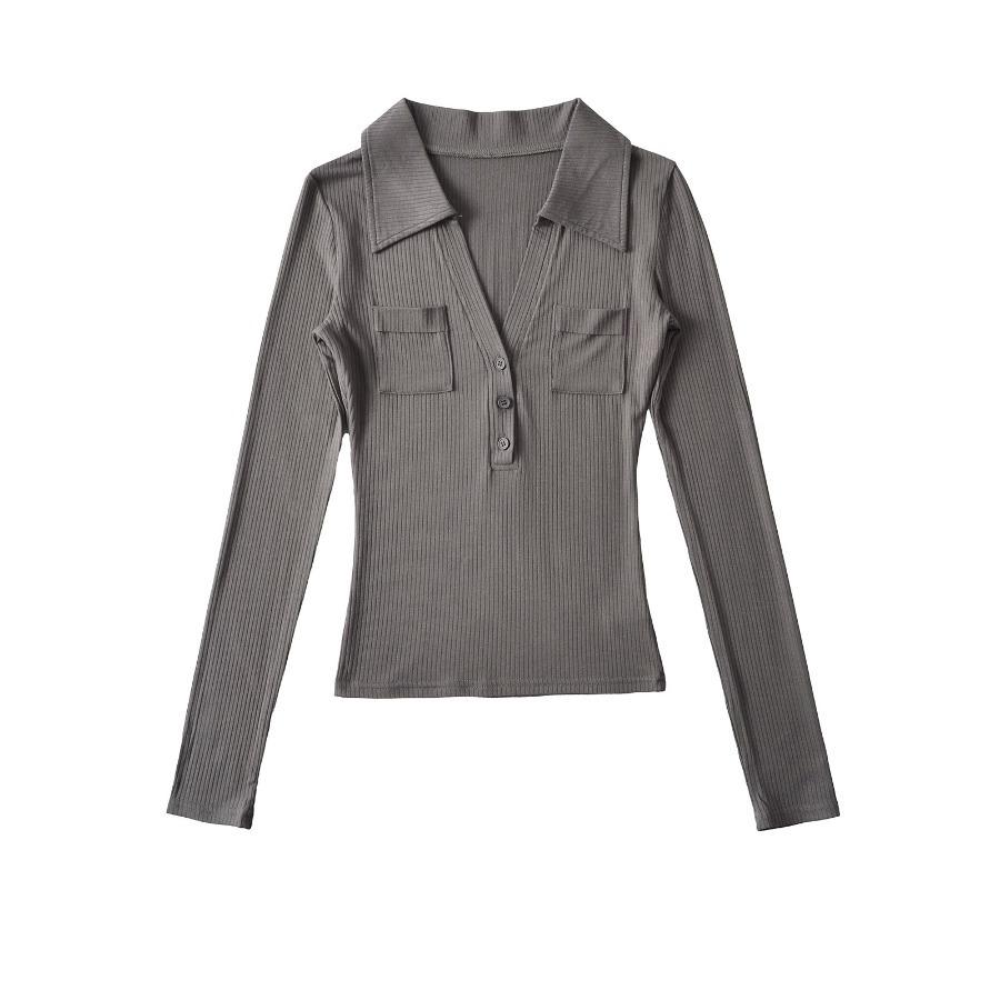 2025 Primavera Nuevo Color Sólido Doble Bolsillo Solapa Tres Botones Manga Larga Slim Camisetas Tops para Mujer al Mayoreo