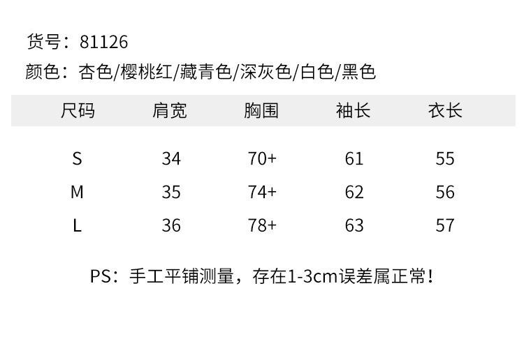 Apricot, Cherry red, Dark gray, Navy blue, White, Black