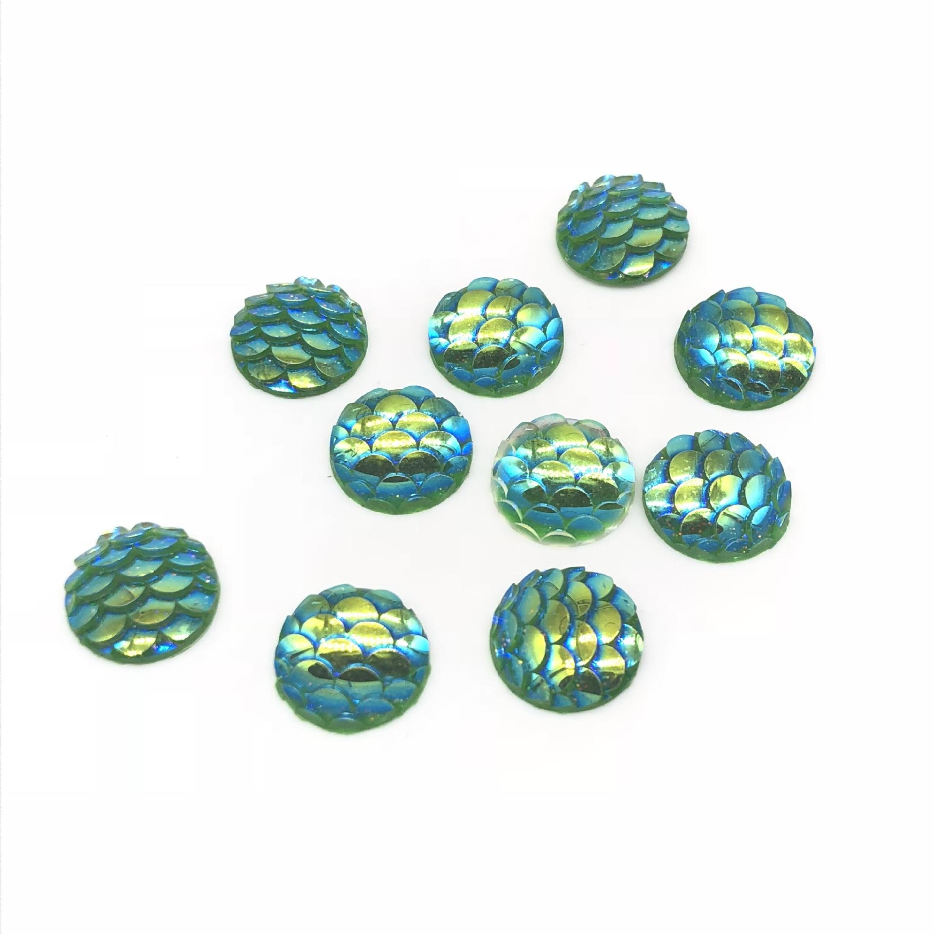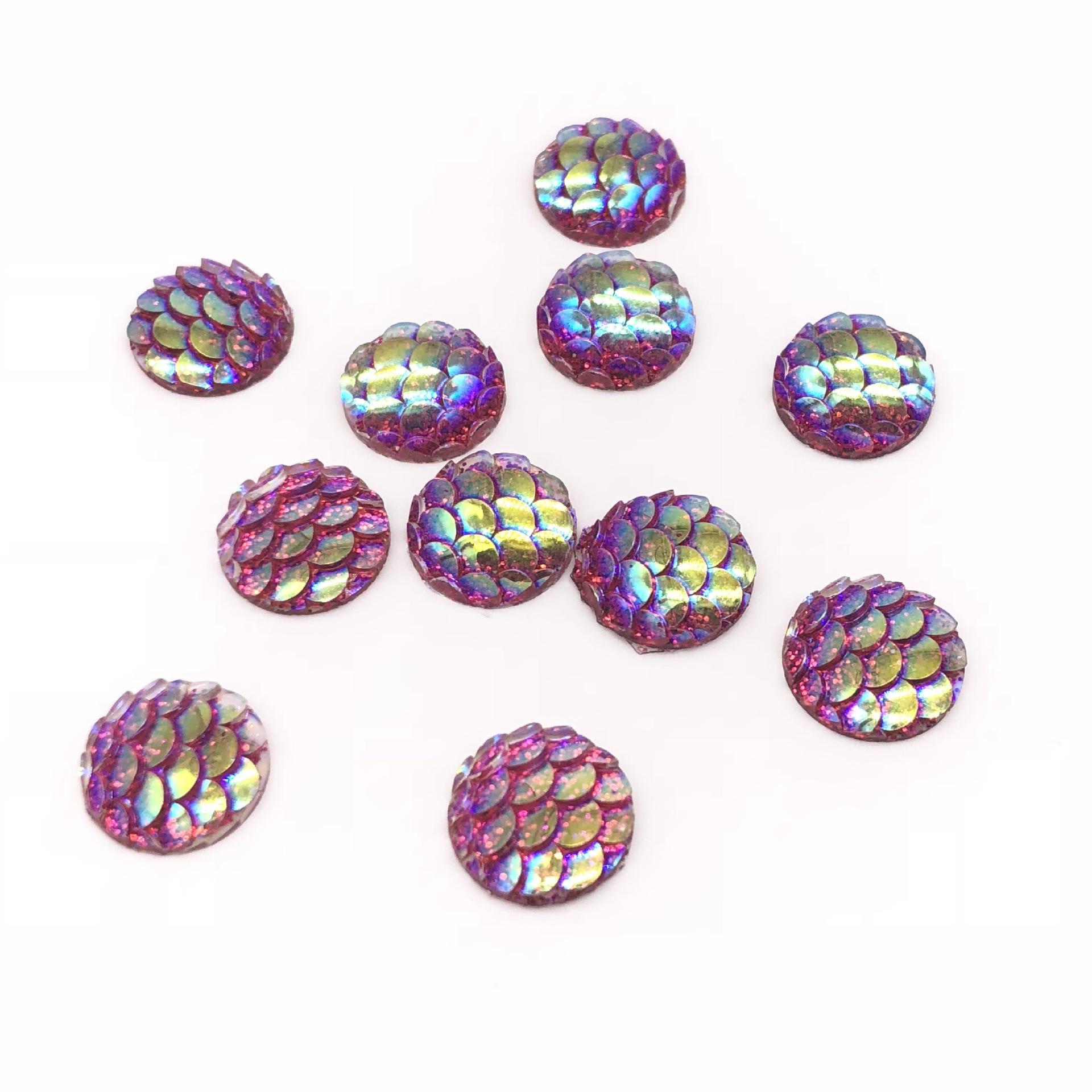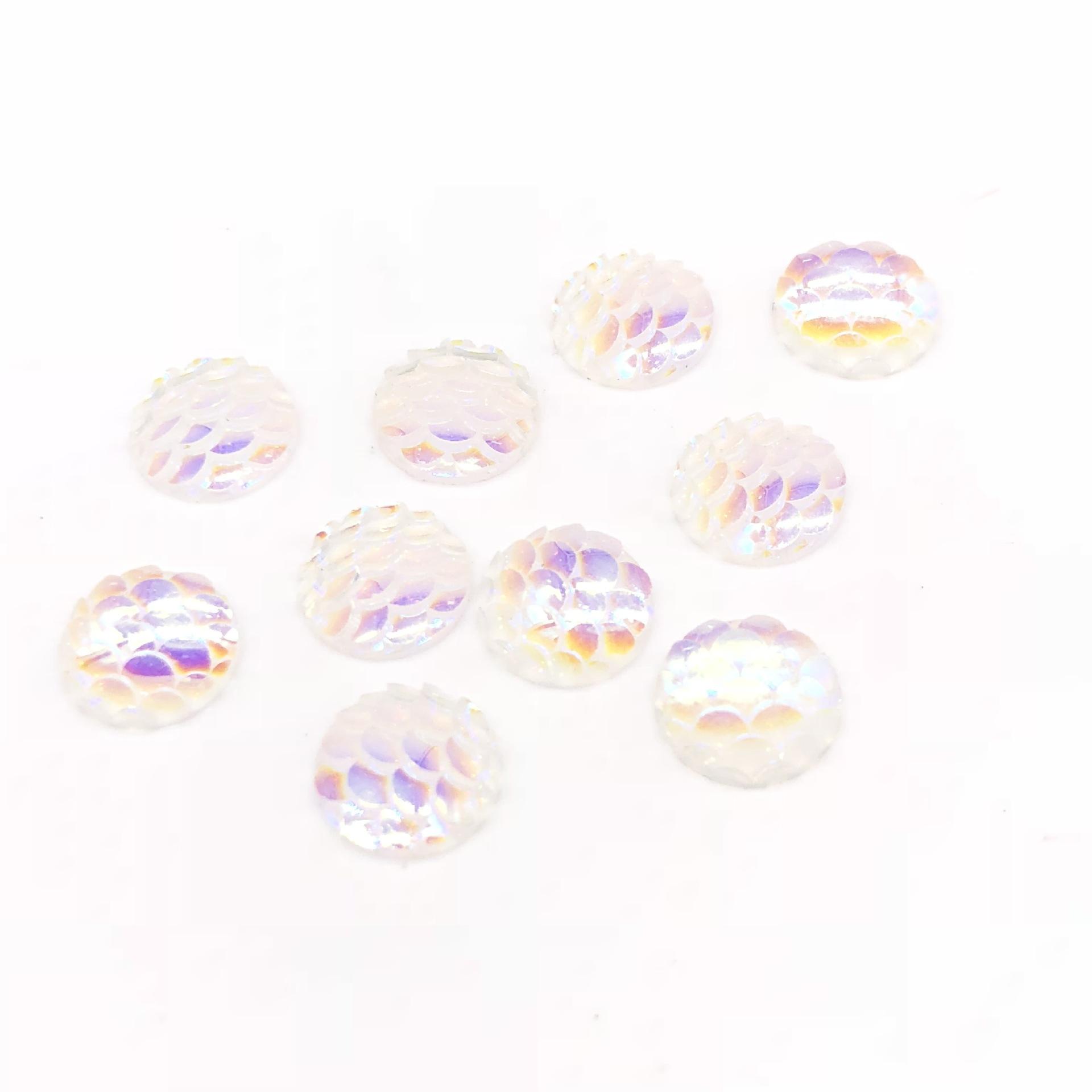 Primavera y Verano Resina Planos Fondo Diamante 10mm Escama de Pescado Parche Redondo Chapado Láser Color AB Hecho a Mano Diamante Accesorios DIY