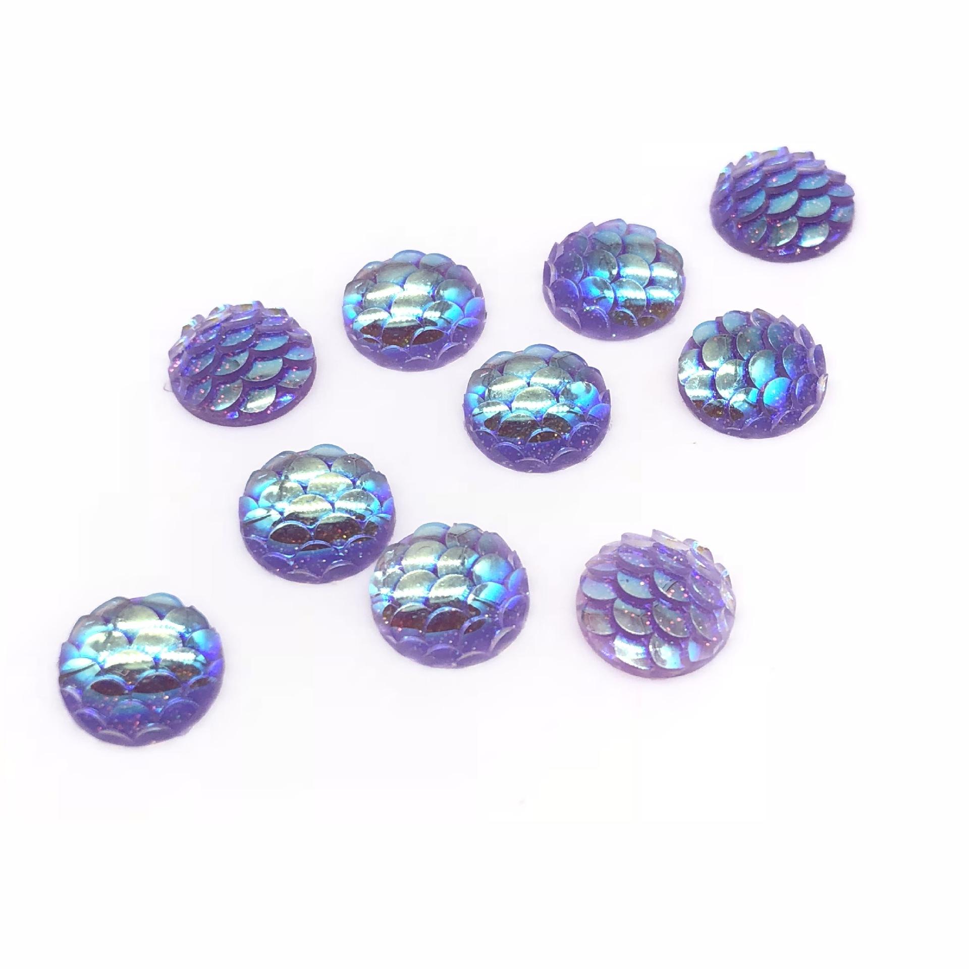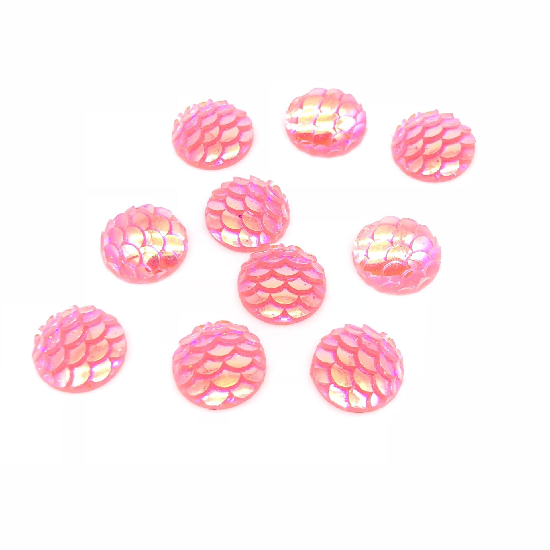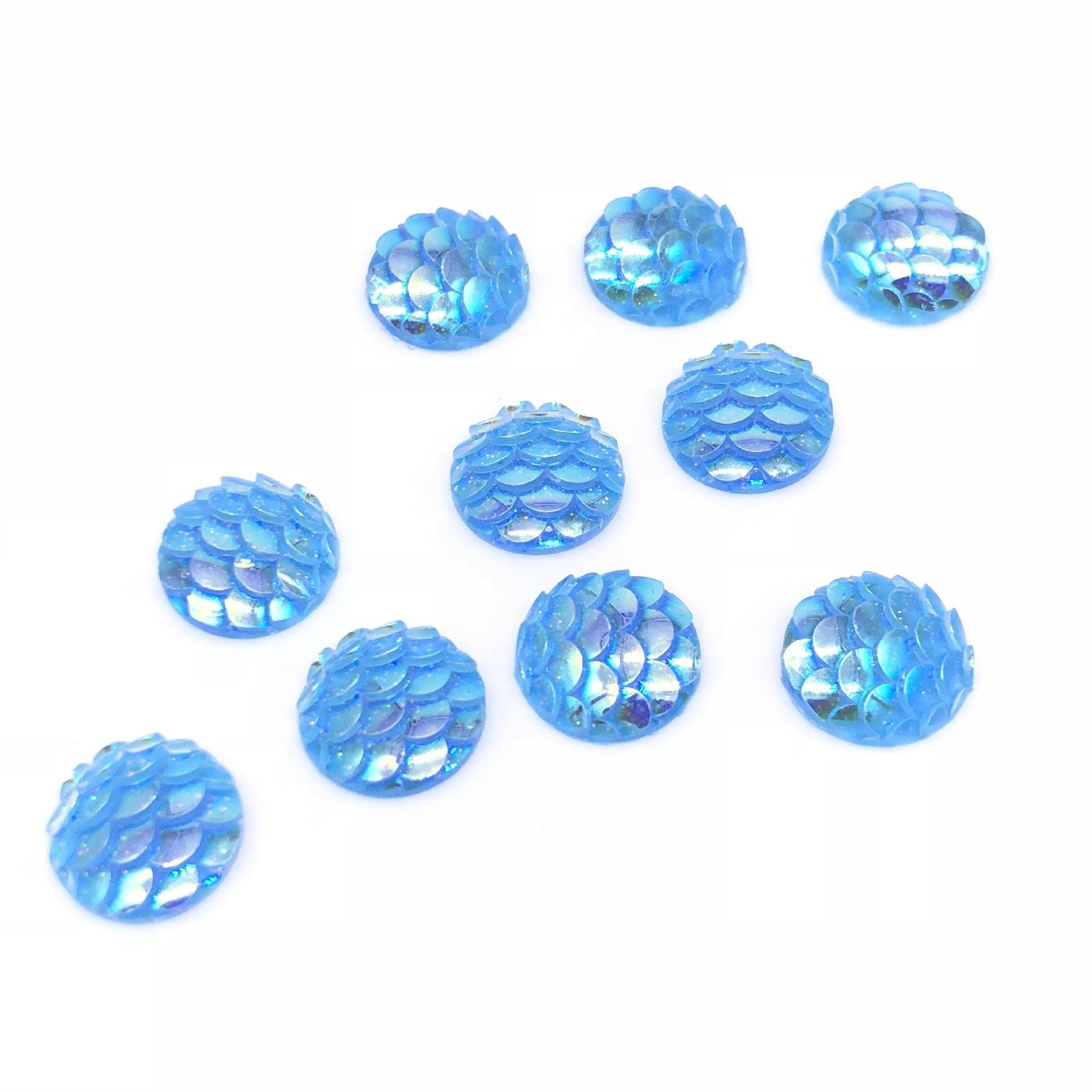 Primavera y Verano Resina Planos Fondo Diamante 10mm Escama de Pescado Parche Redondo Chapado Láser Color AB Hecho a Mano Diamante Accesorios DIY