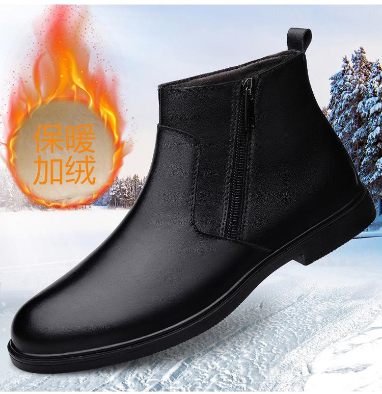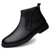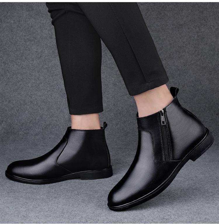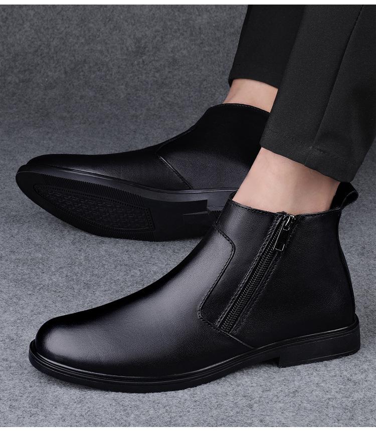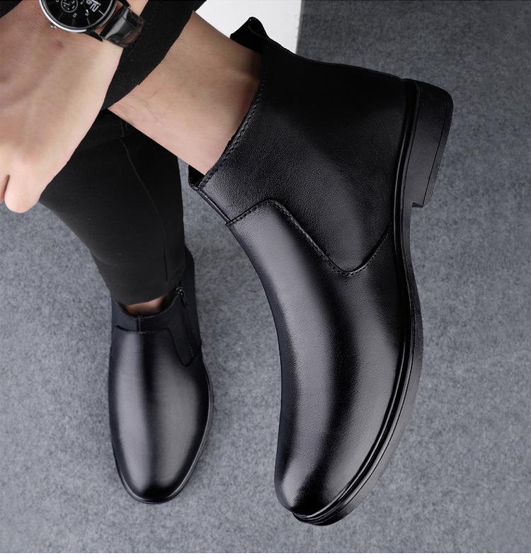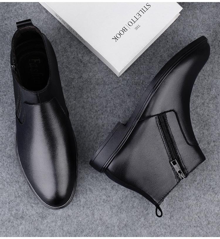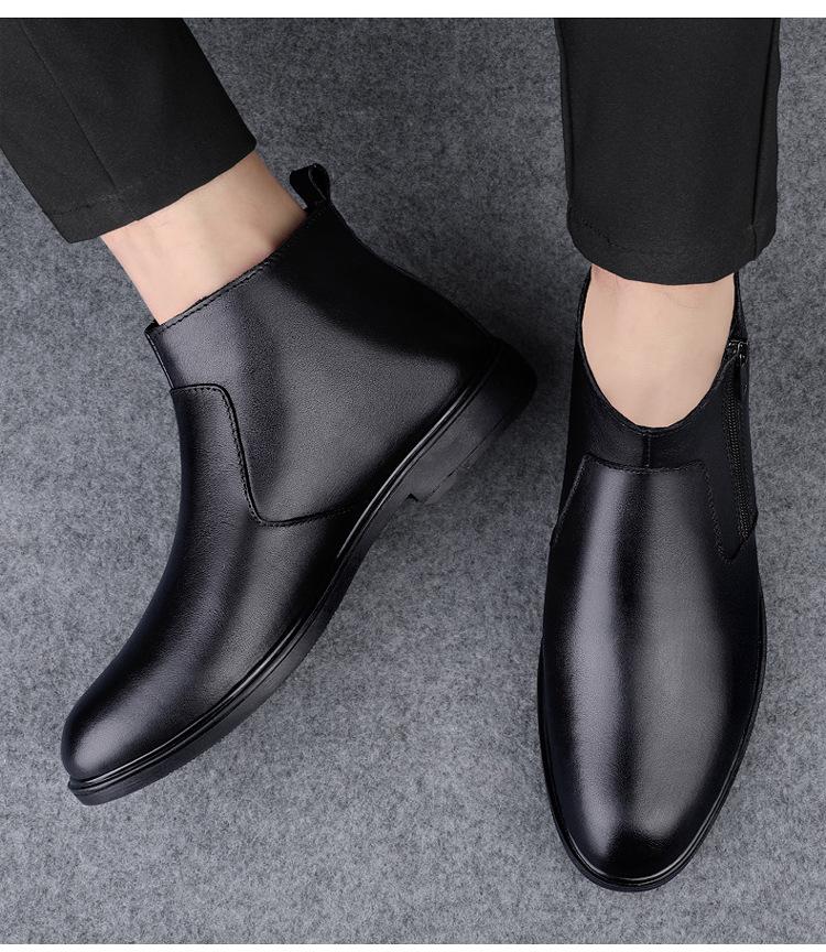 Botines Chelsea de Hombre de Alta Calidad Capa Superior Piel de Vaca Forro polar Espesado Cálido Botines Cortos de Negocios Cierre Lateral Botas de Algodón