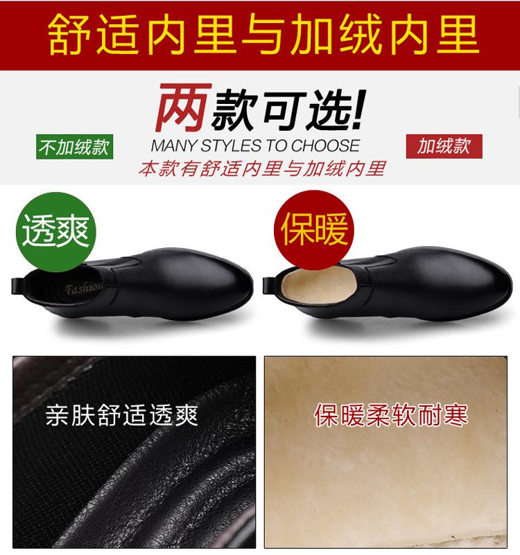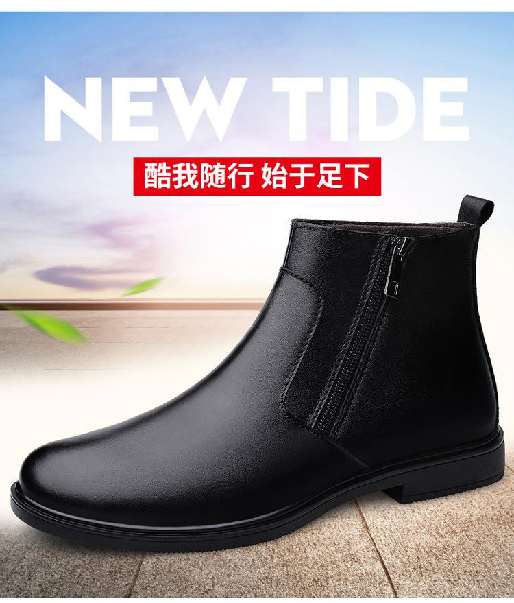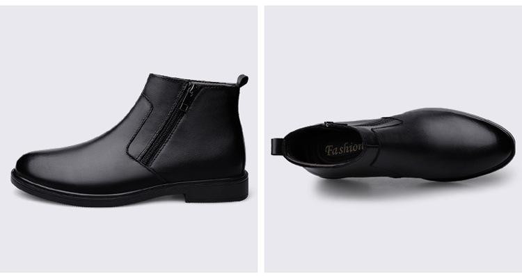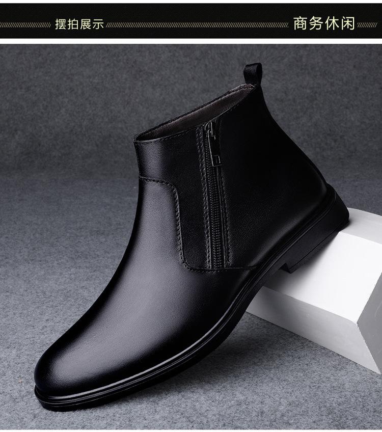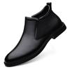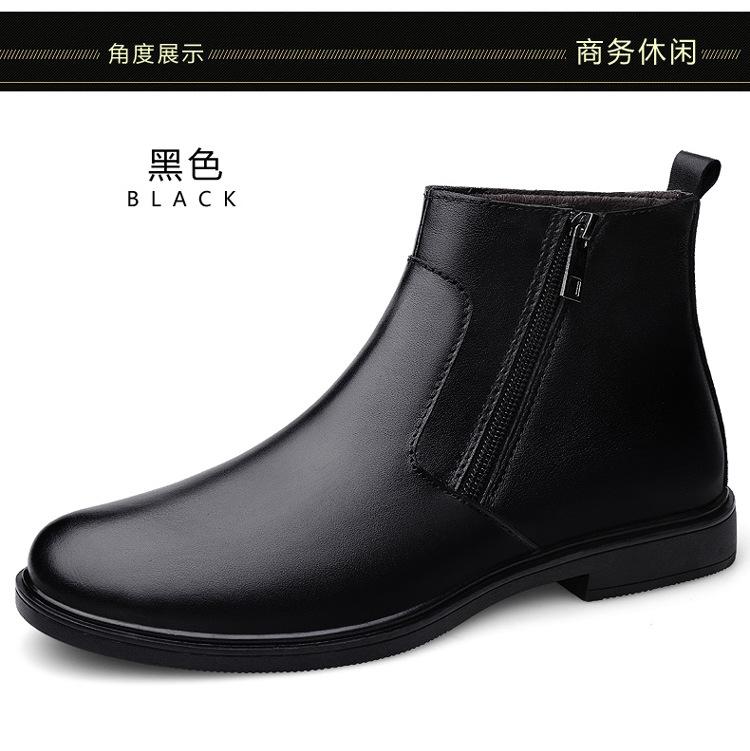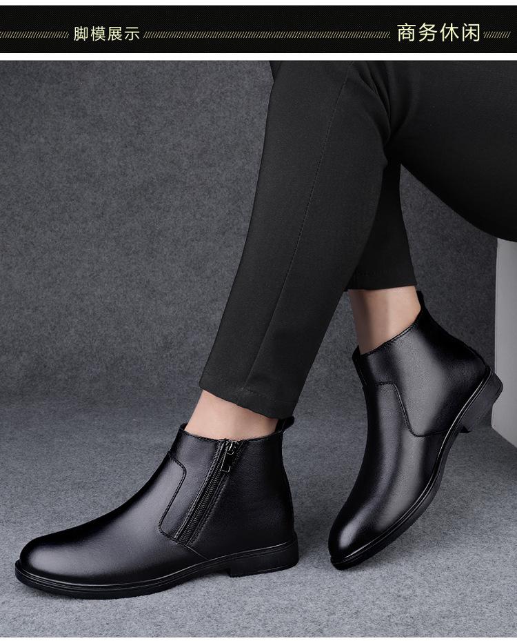 Botines Chelsea de Hombre de Alta Calidad Capa Superior Piel de Vaca Forro polar Espesado Cálido Botines Cortos de Negocios Cierre Lateral Botas de Algodón