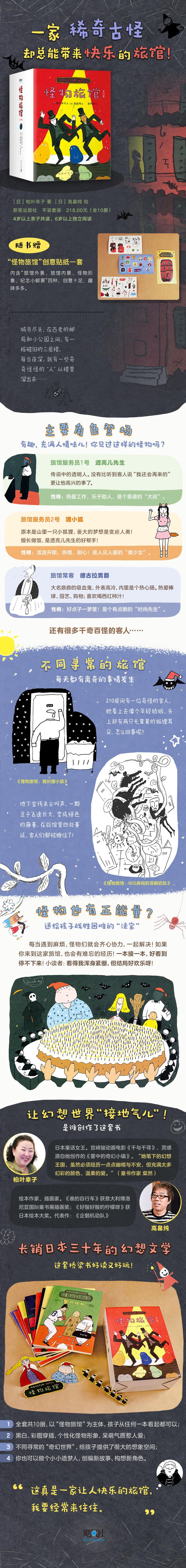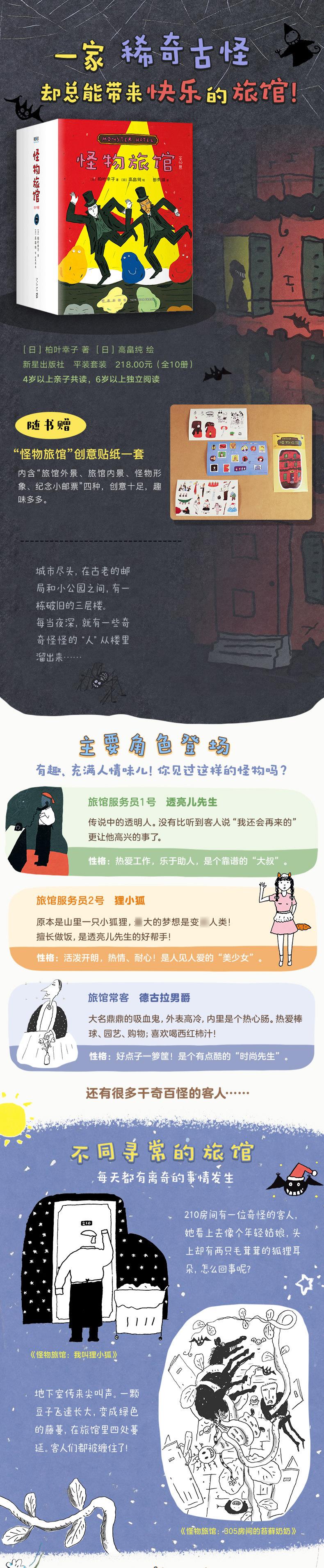 En las afueras de la ciudad, entre la antigua oficina de correos y el pequeño parque, hay un edificio ruinoso de tres pisos. Durante el día, es muy tranquilo aquí, y la gente incluso piensa que es un edificio vacío. Sin embargo, cada noche, muchos monstruos entran y salen aquí. Un ciempiés que usa 50 zapatos, un vampiro al que le encanta beber jugo de tomate, un esqueleto que está listo para ir a una cita... ¡Porque esto en realidad es un hotel de monstruos! """El cumpleaños del Abuelo Demonio" Cada año el día del mes de Dazo Dazo, el Hotel Monstruo celebra una fiesta de cumpleaños para el Abuelo Demonio. El camarero Sr. Toulianer está ocupado como de costumbre, y el Dios del Sueño también viene a ayudar. Sin embargo, nadie esperaba que un extraño niño irrumpiera...""" Hay una invitada extraña en la Habitación 201 de "Mi nombre es Li Xiaohu". Parece una chica joven, pero tiene dos orejas de zorro peludas en la cabeza. ¿Qué está pasando? "El Fantasma Pianista" Un viejo fantasma de Alemania se sentaba solo en el vestíbulo del hotel sosteniendo un ramo de rosas. Estaba esperando a alguien, pero después de tres años, esa persona aún no aparecía... 《El dolor de espalda se ha ido》El monstruo espalda con espalda nunca usa ningún medio de transporte cuando sale, espera