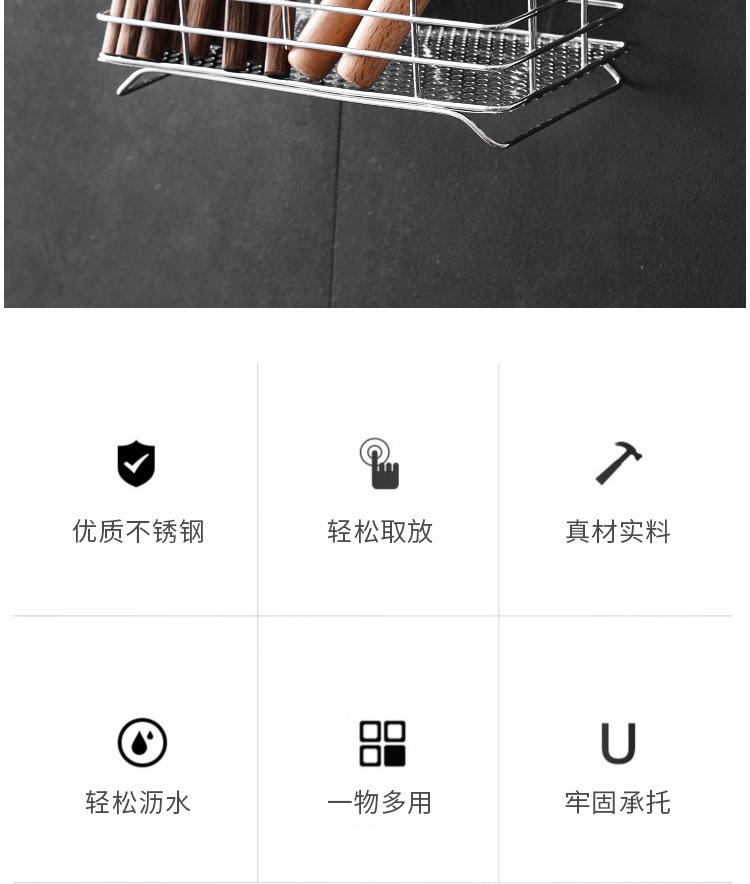 Soporte de acero inoxidable para palillos, estante de almacenamiento multifuncional para colgar utensilios de cocina, para colgar cuchillos y palillos, montado en la pared