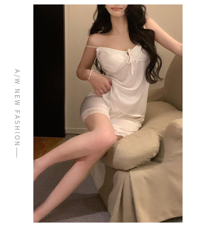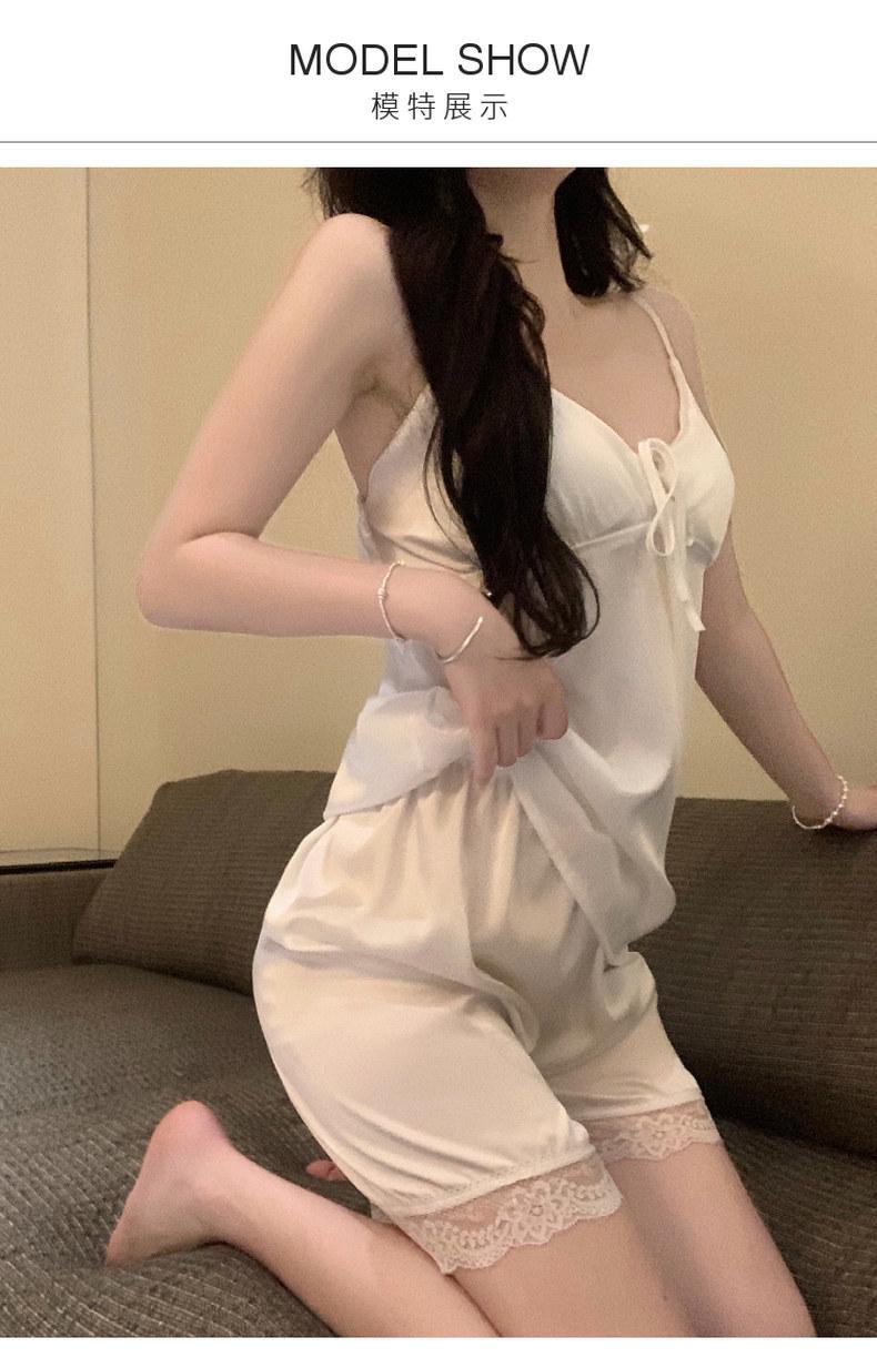 Pijamas de Verano para Mujer con Almohadilla en el Pecho, Tirantes, Shorts, Seda Hielo y Nieve, Encaje, Sexy, Estilo Puro, Ropa para el Hogar, Conjunto de Dos Piezas