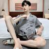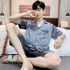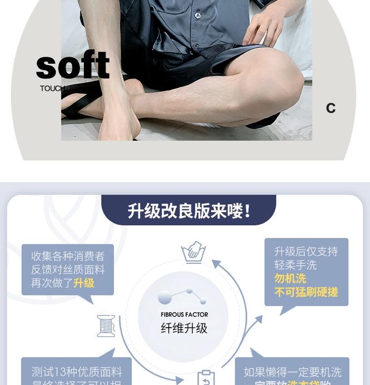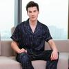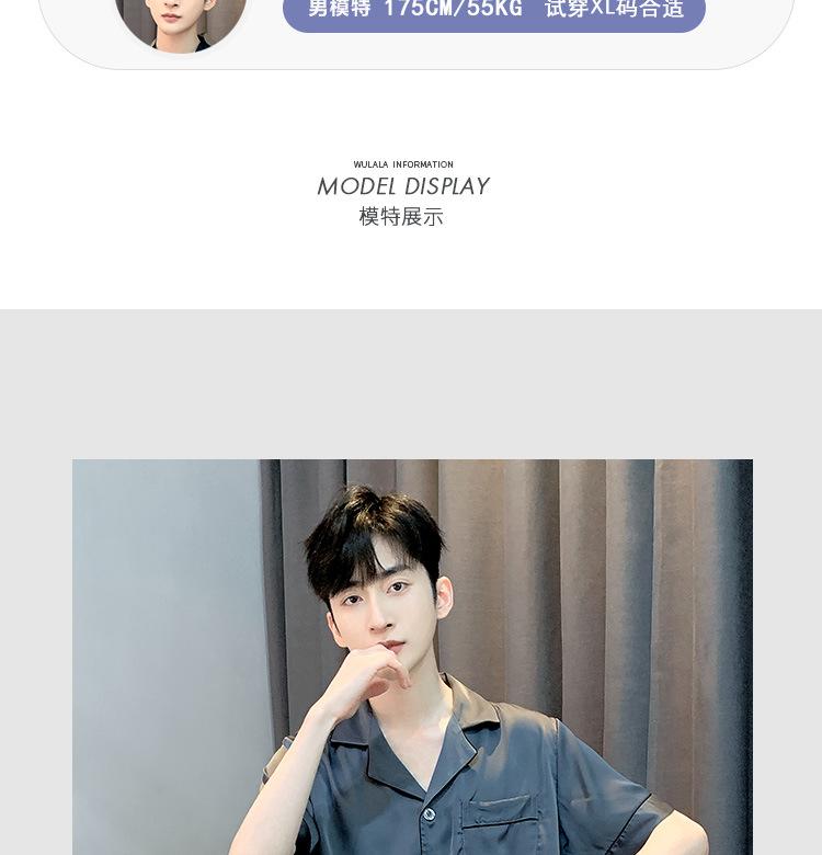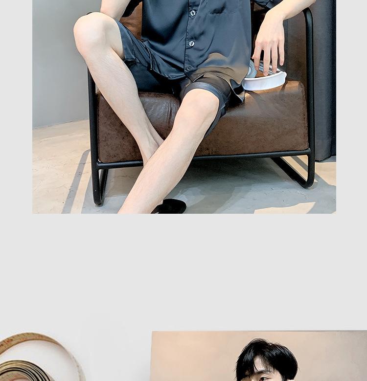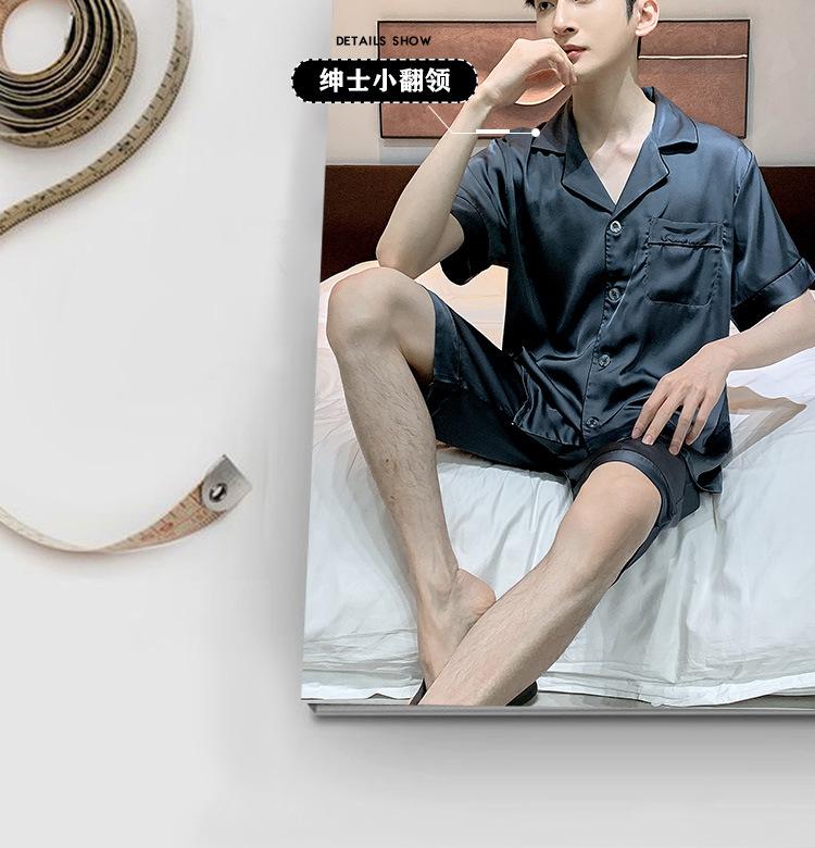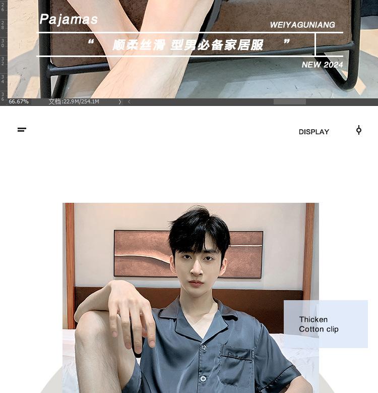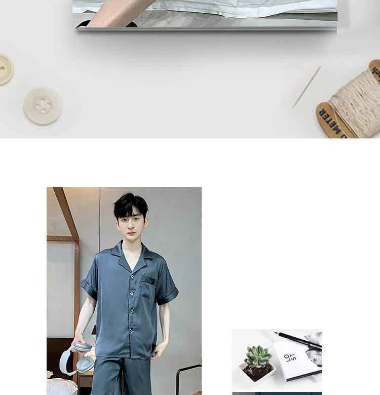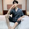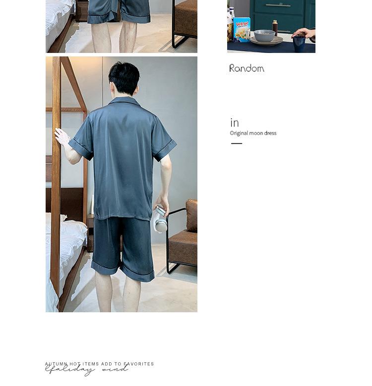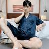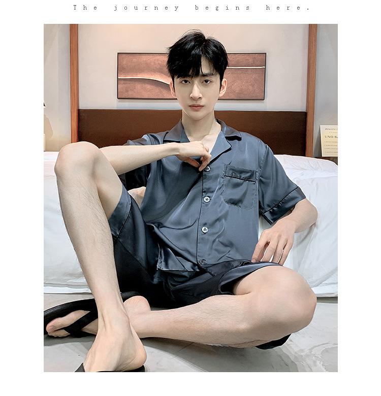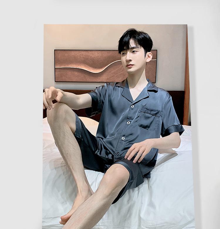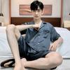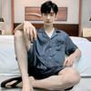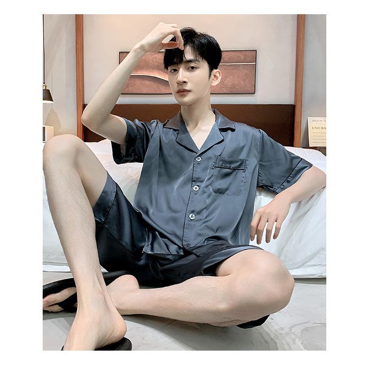 Pijama para Hombre Verano Delgado Color Sólido Seda de Hielo Manga Corta Adolescentes Imitación Seda Talla Grande Traje para Casa Transfronterizo
