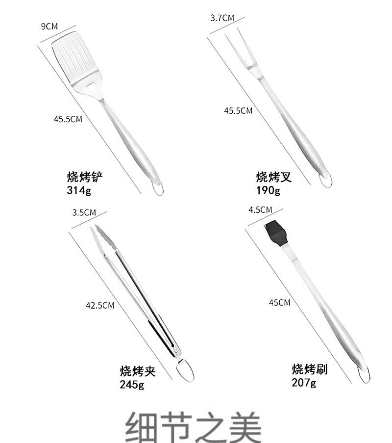 Juego de 4 piezas de herramientas para barbacoa más vendidas de Amazon, herramientas de acero inoxidable para asar, juego para el hogar para barbacoa al aire libre, barbacoa portátil para exteriores