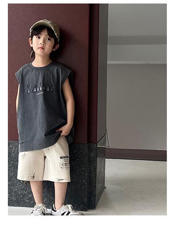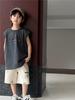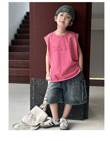 Ropa de Verano para Niños, Chaleco de Algodón Puro, Bordado de Parche con Número en Bloque de Color de Moda, Camiseta sin Mangas Desgastada para Niños y Niñas