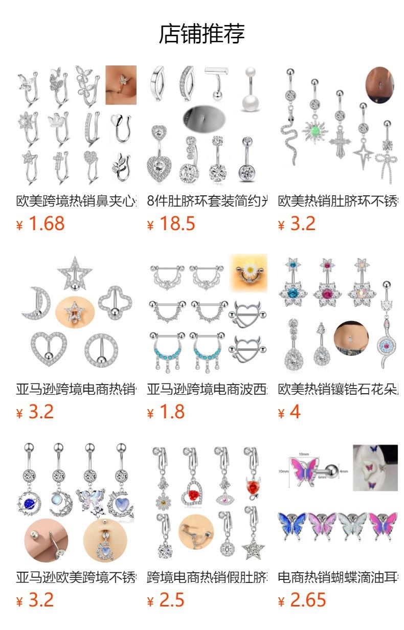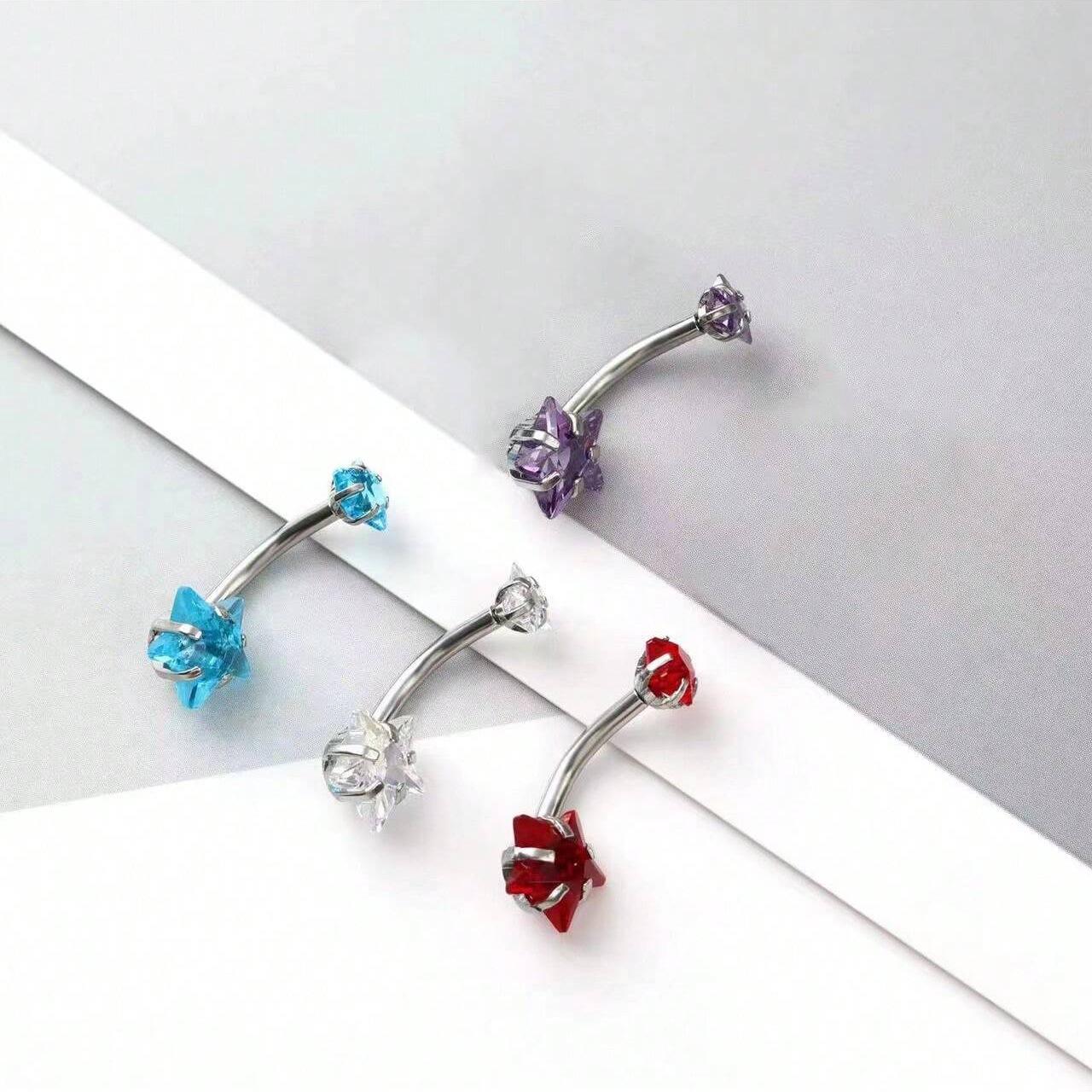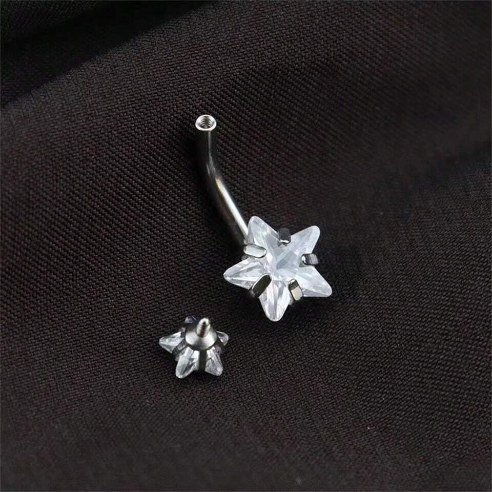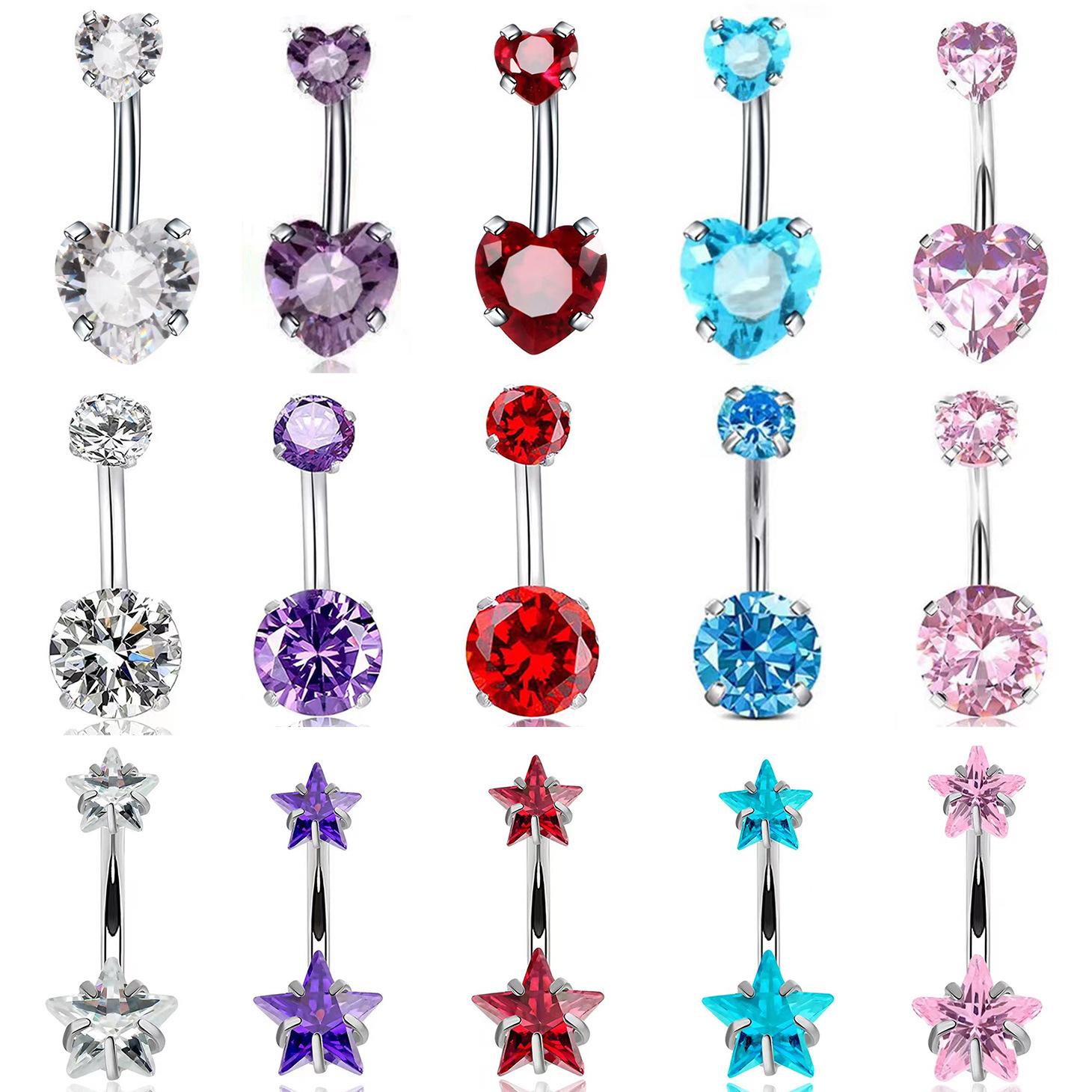 Venta al por mayor transfronteriza europea y americana de gran venta con incrustaciones de circonita de moda redonda en forma de corazón estrella de cinco puntas circonita uña para el ombligo diente interno anillo para el ombligo