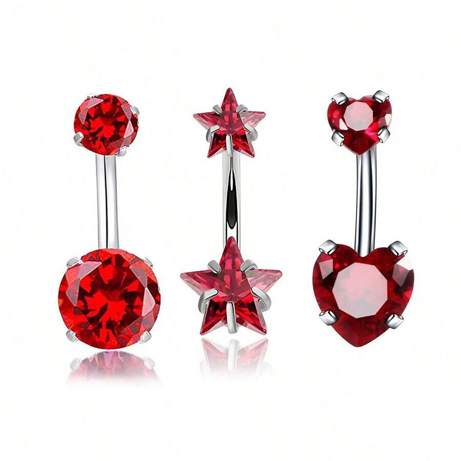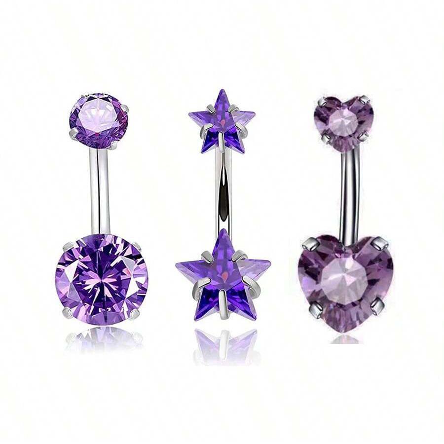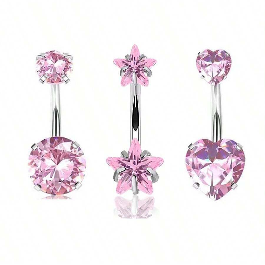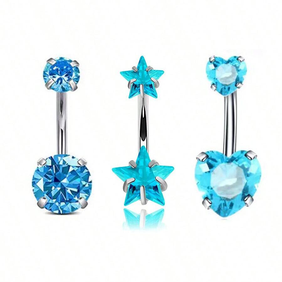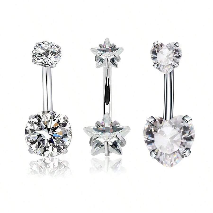 Venta al por mayor transfronteriza europea y americana de gran venta con incrustaciones de circonita de moda redonda en forma de corazón estrella de cinco puntas circonita uña para el ombligo diente interno anillo para el ombligo