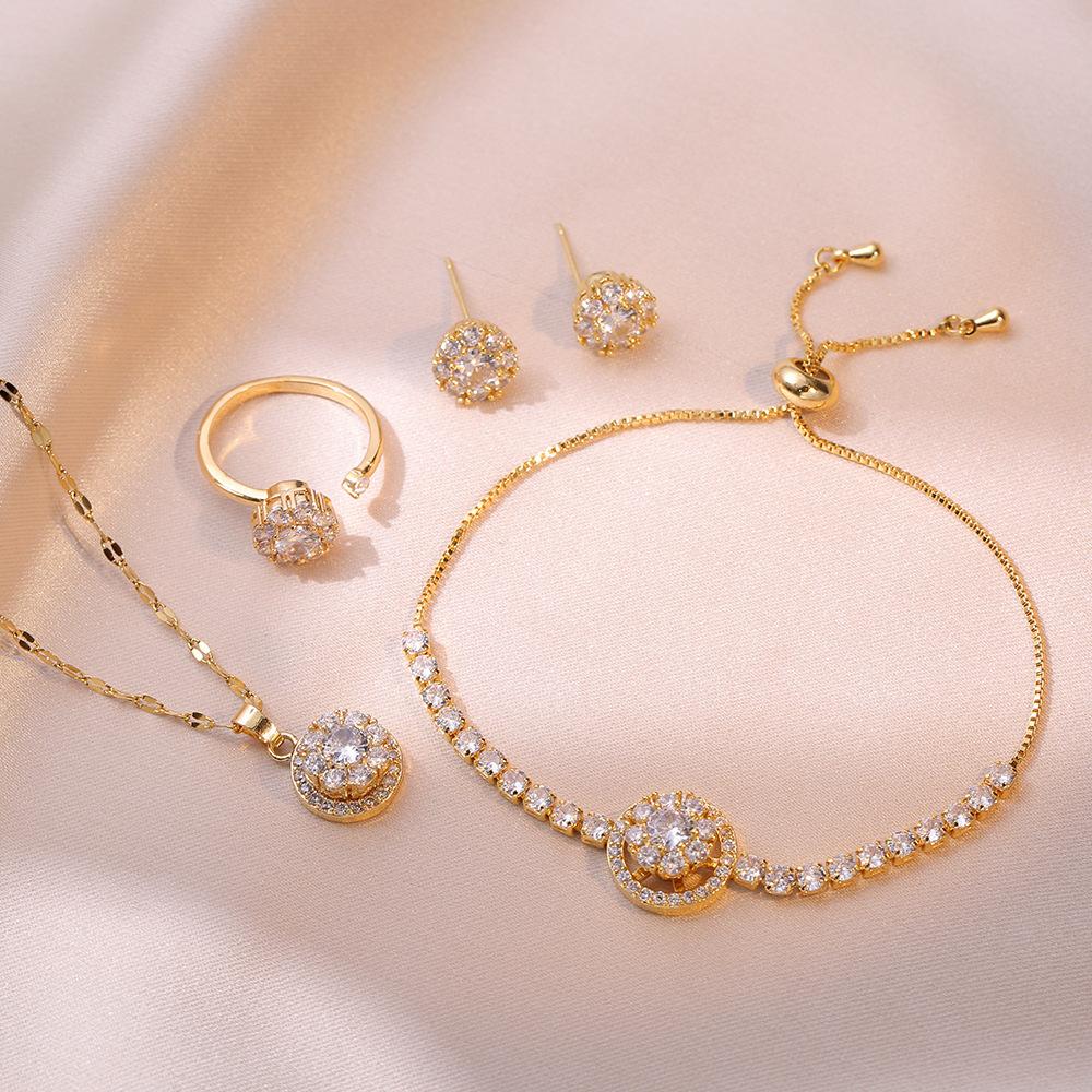 Collar para Mujer Popular en Internet Collar Giratorio Libre Anillo Aretes Pulsera Traje Zircón Cadena Clavícula