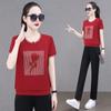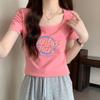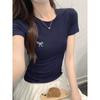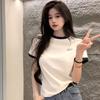2025 Verano Nuevo Hombro Algodón Blanco Camiseta de Manga Corta para Mujer Holgada Combinable Hombro Top Reductor de Edad