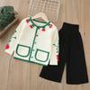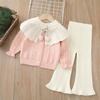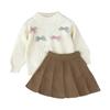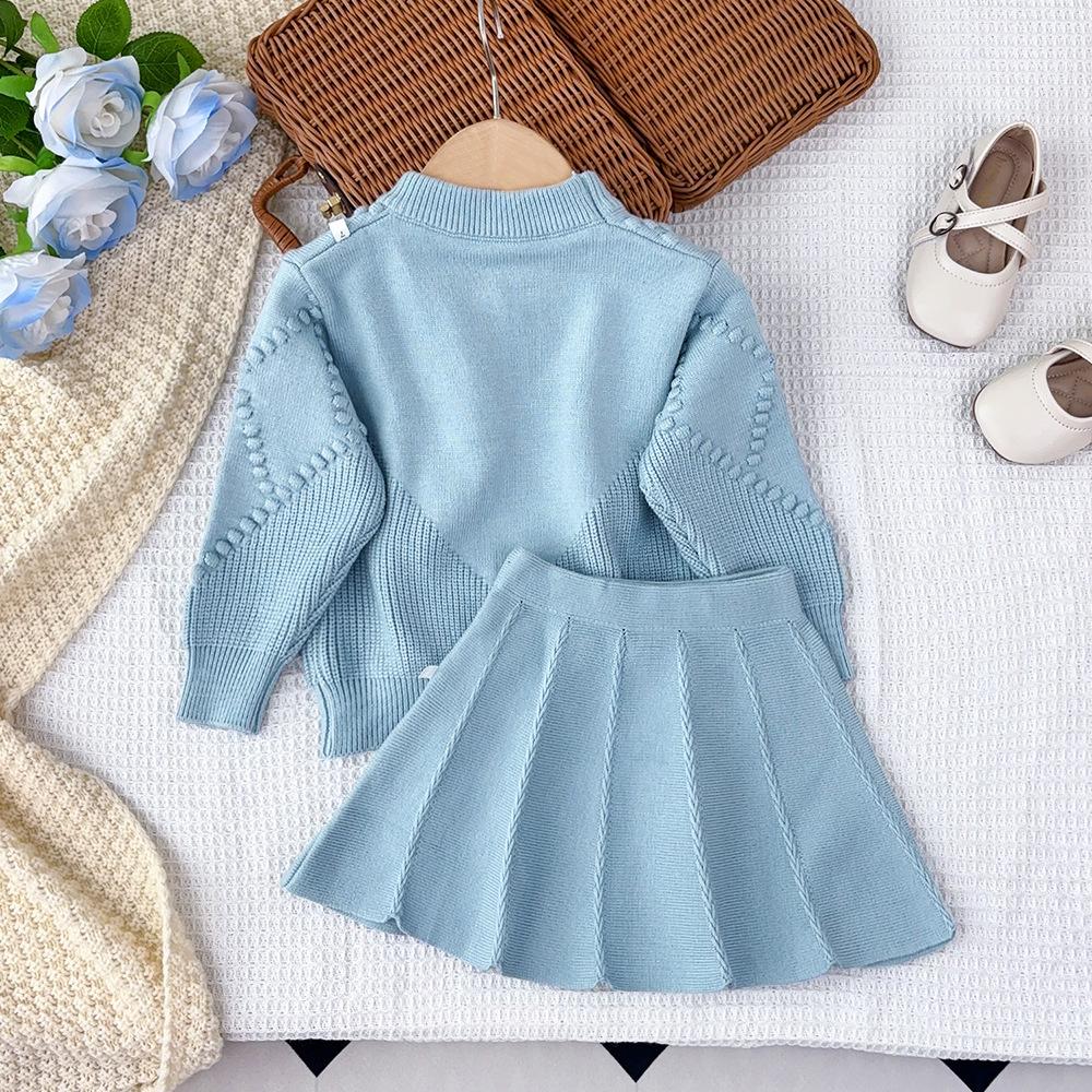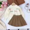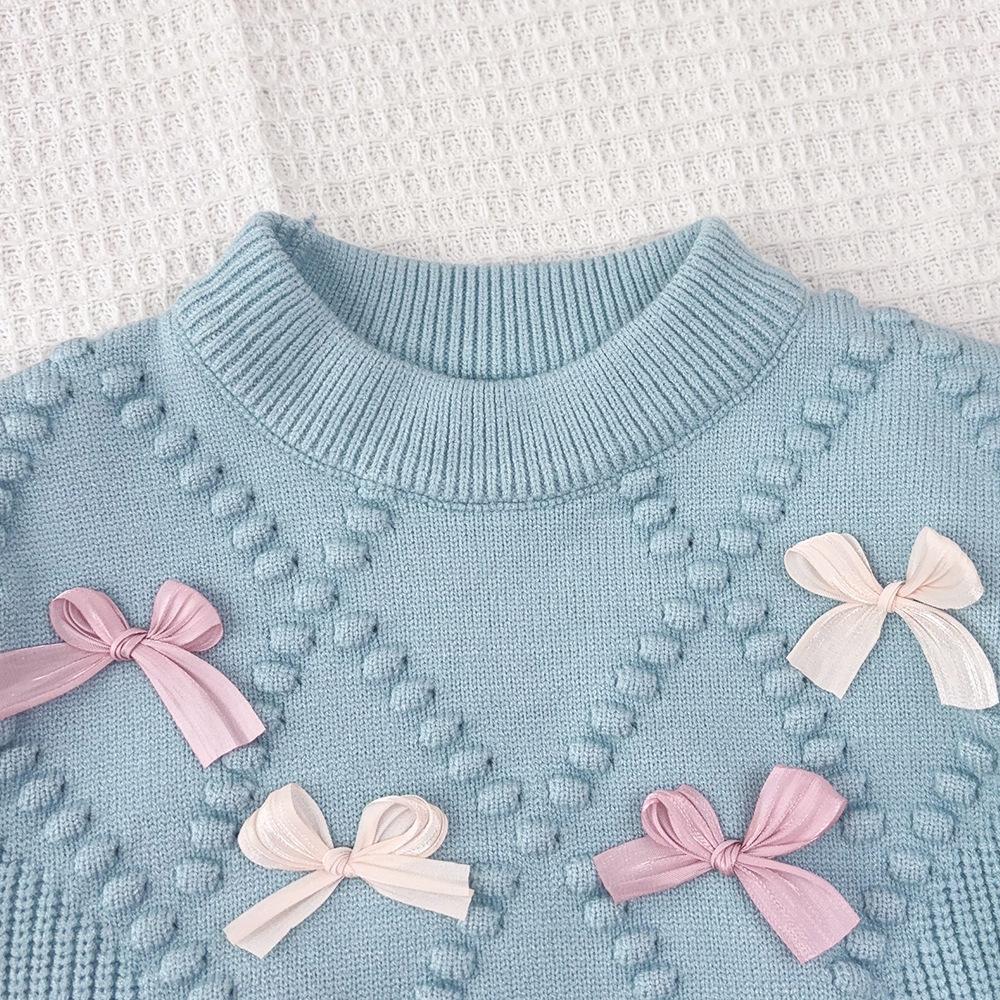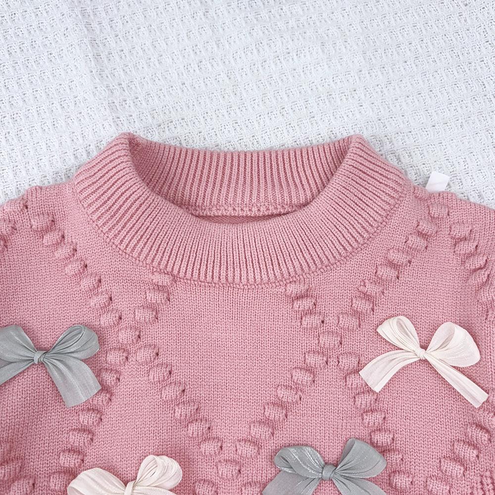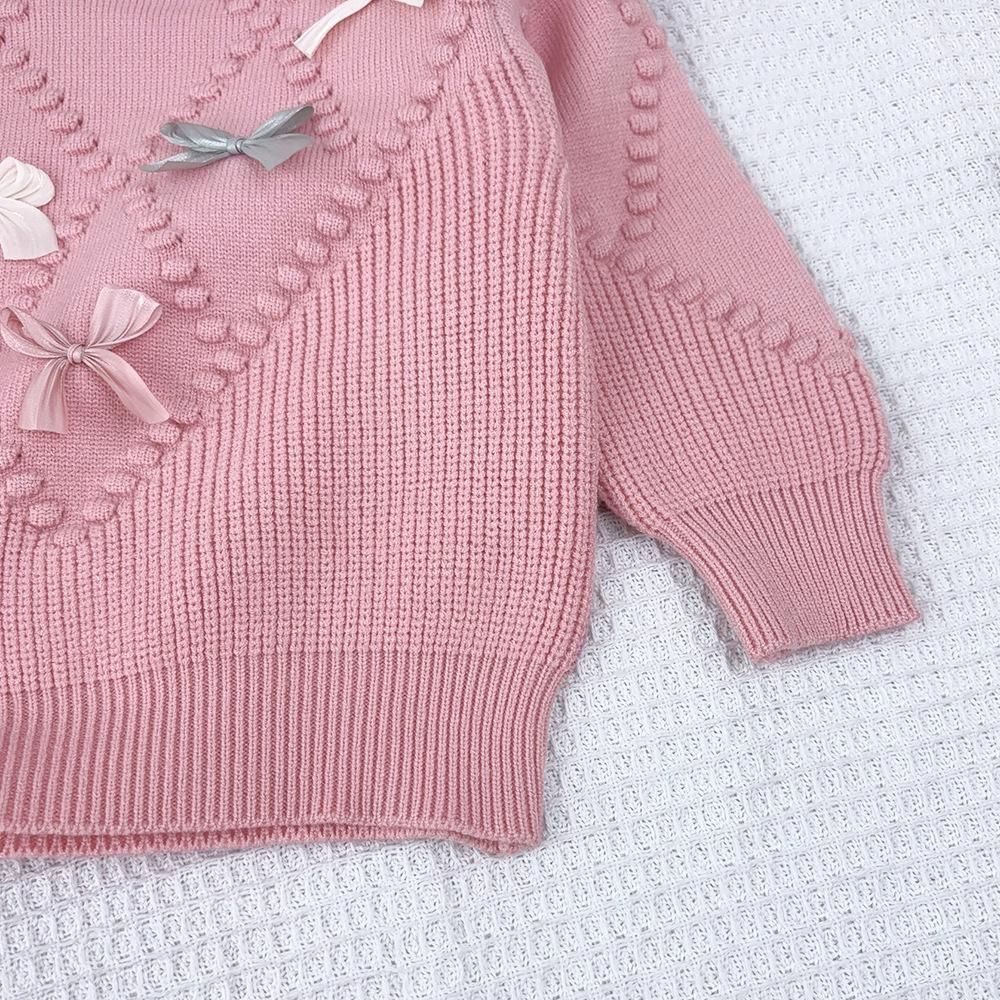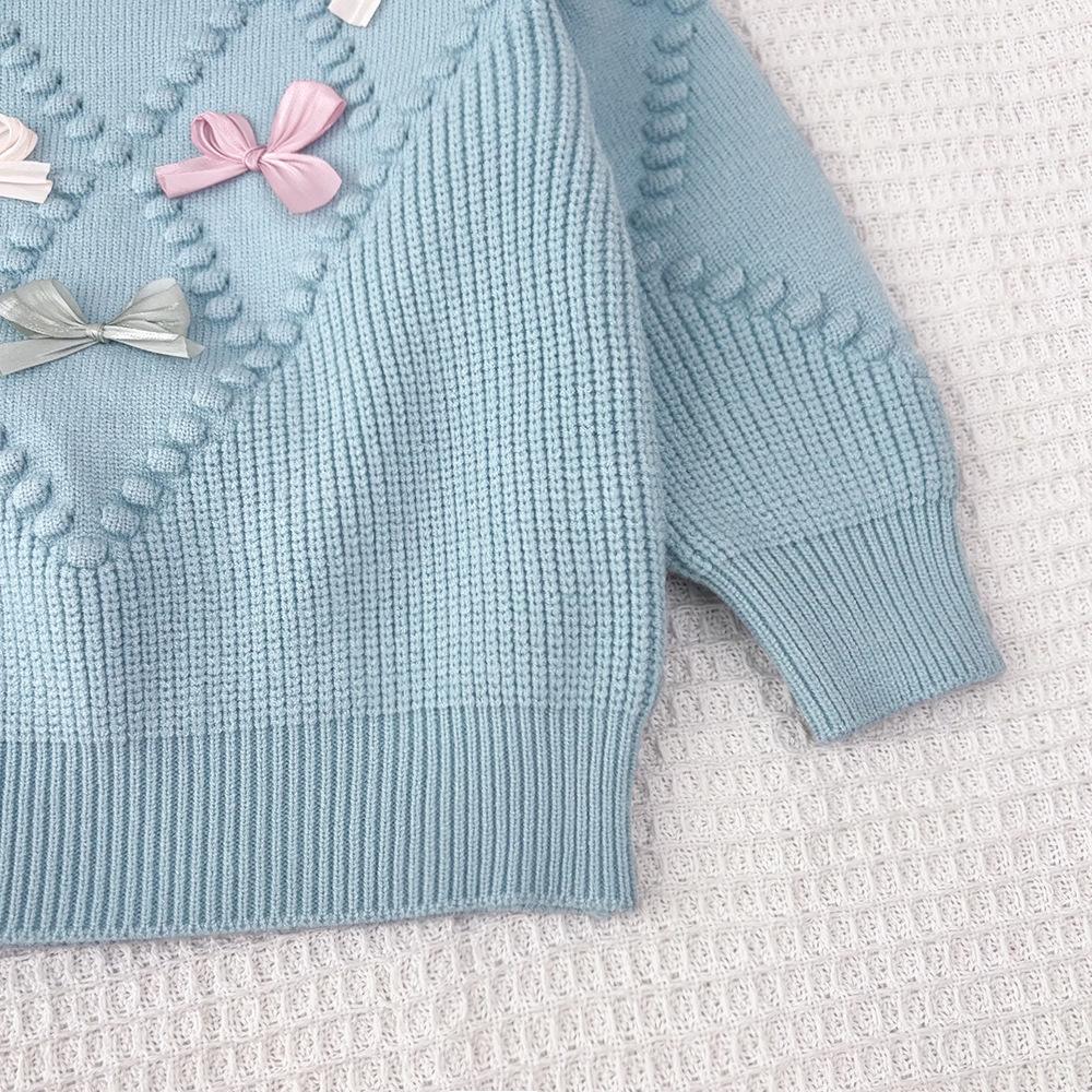 Ropa Coreana para Niños 2025 Otoño e Invierno Nuevo Traje de Suéter Tejido con Lazo de Crochet Estéreo para Niñas de Baja Saturación