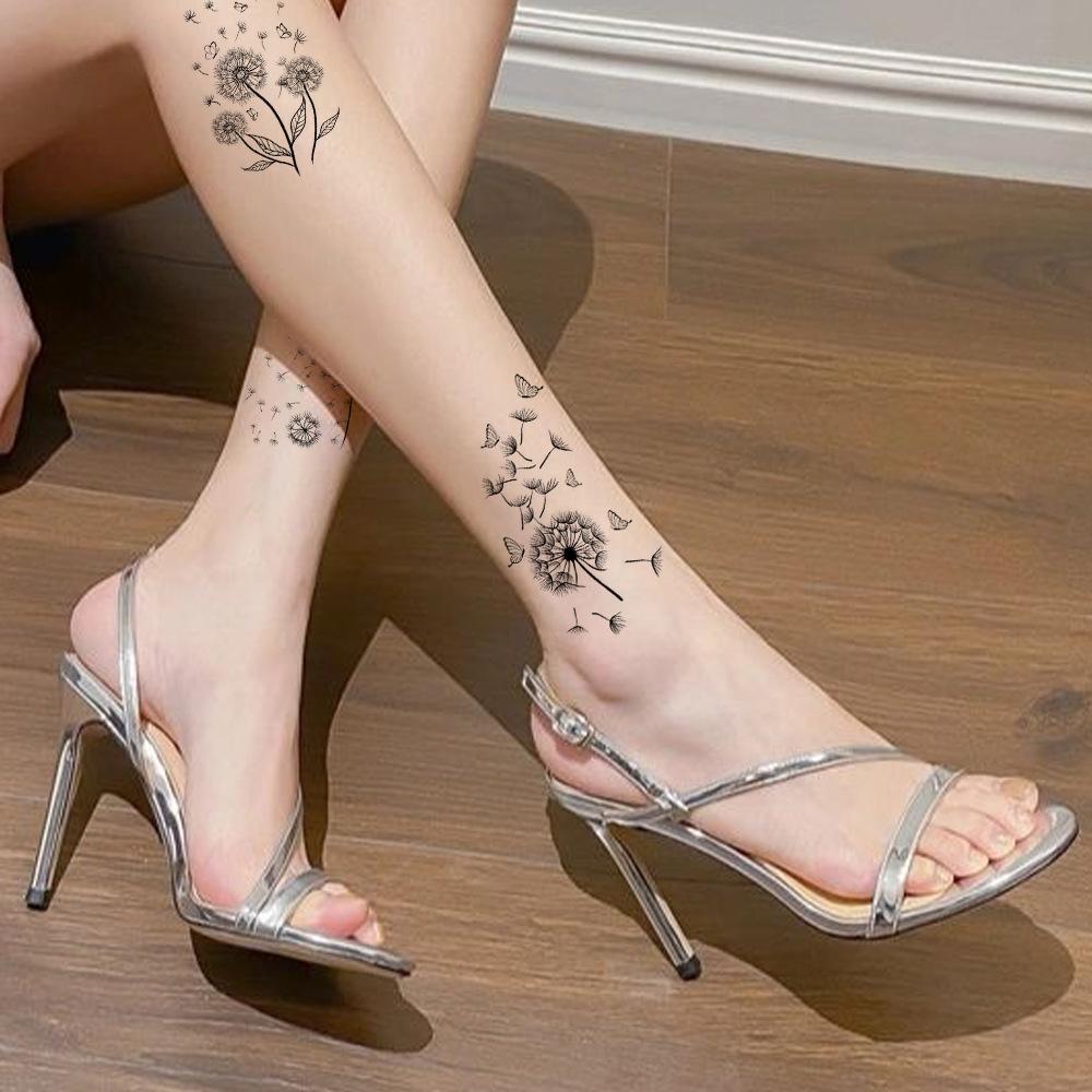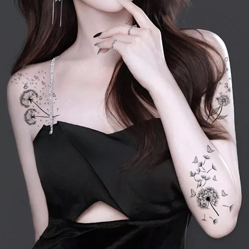 Pegatinas de Tatuaje Temporales de Diente de León Blanco y Negro Transfronterizas Nuevas Sexy Flor Negra Pierna Brazo Fiesta