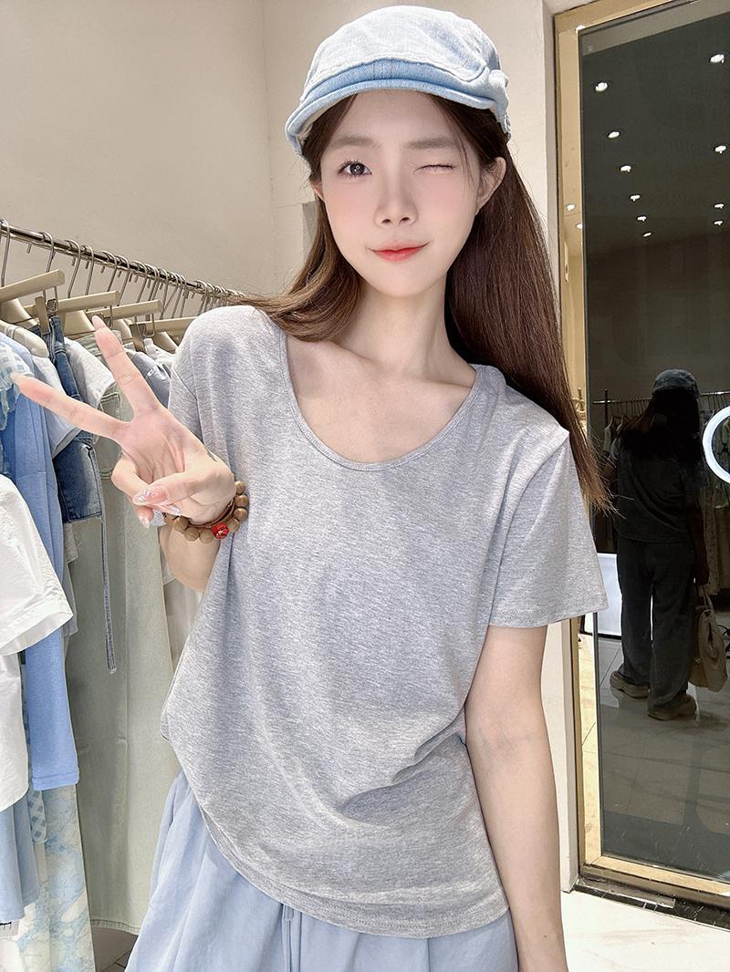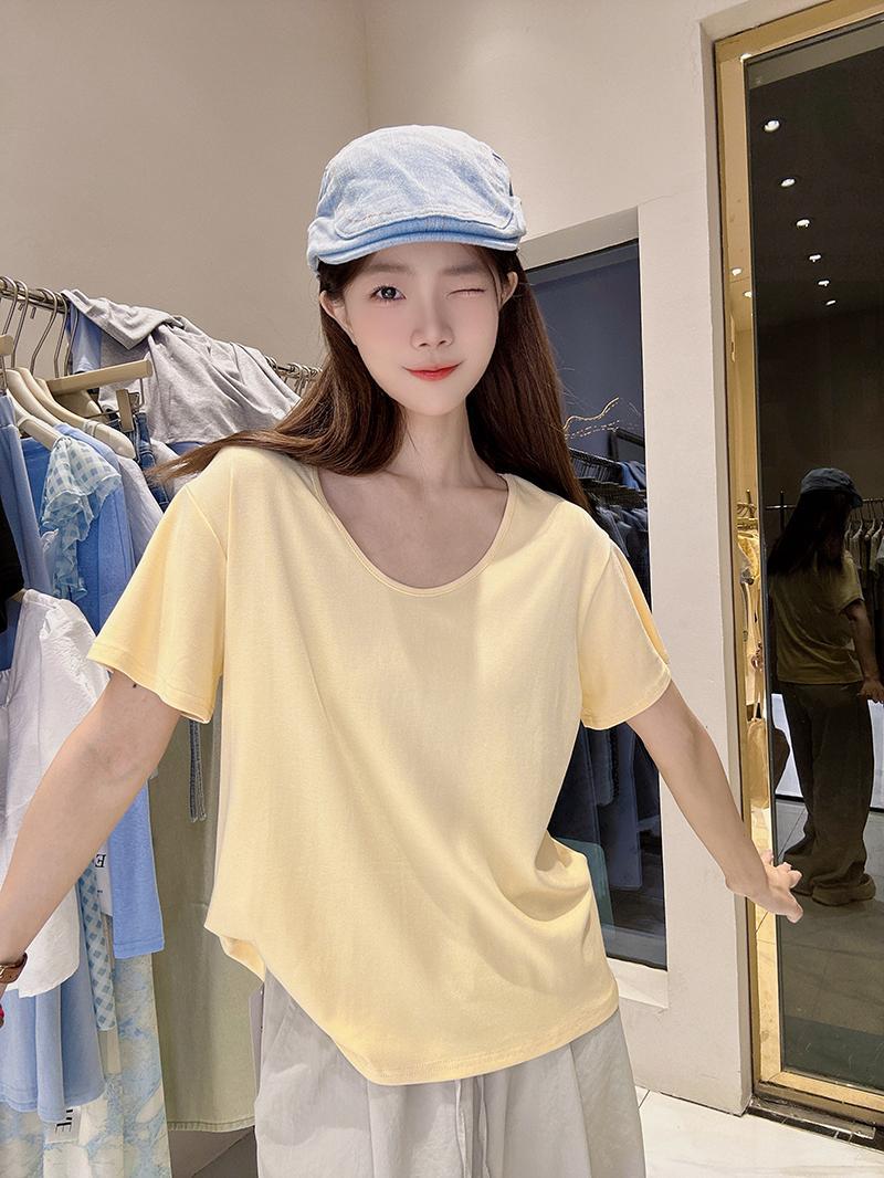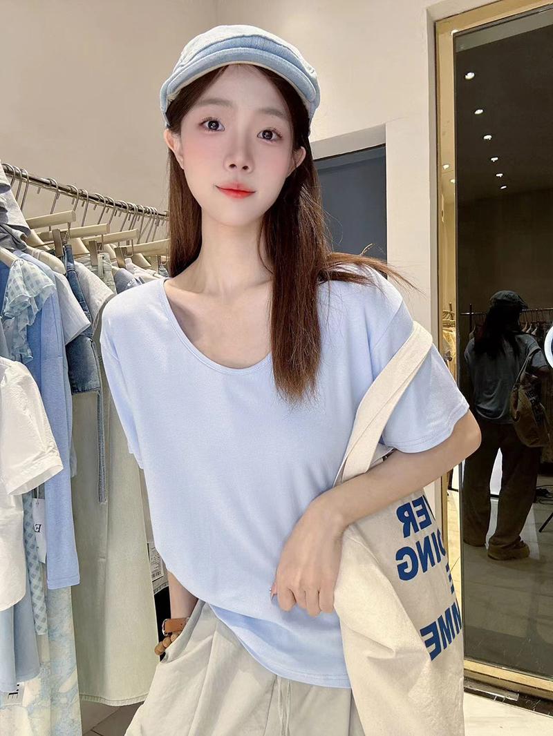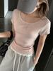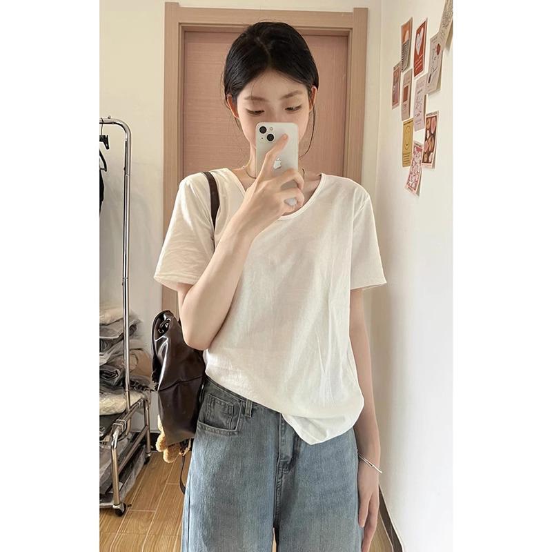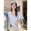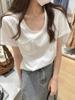 Camiseta Blanca de Hombro a la Moda para Mujer Verano Suelta Adelgazante Chic Casual Combinable Top Diseño Delgado