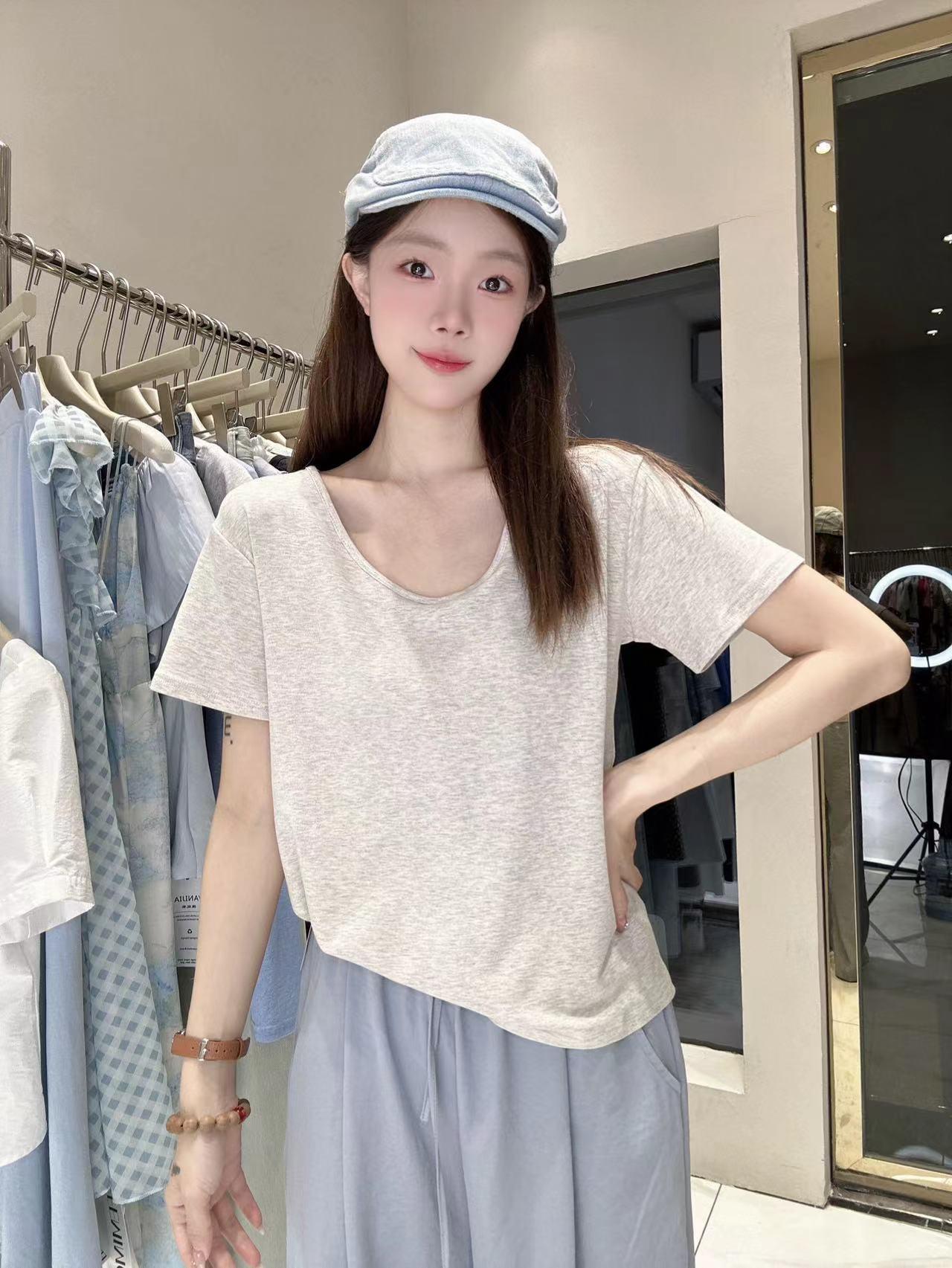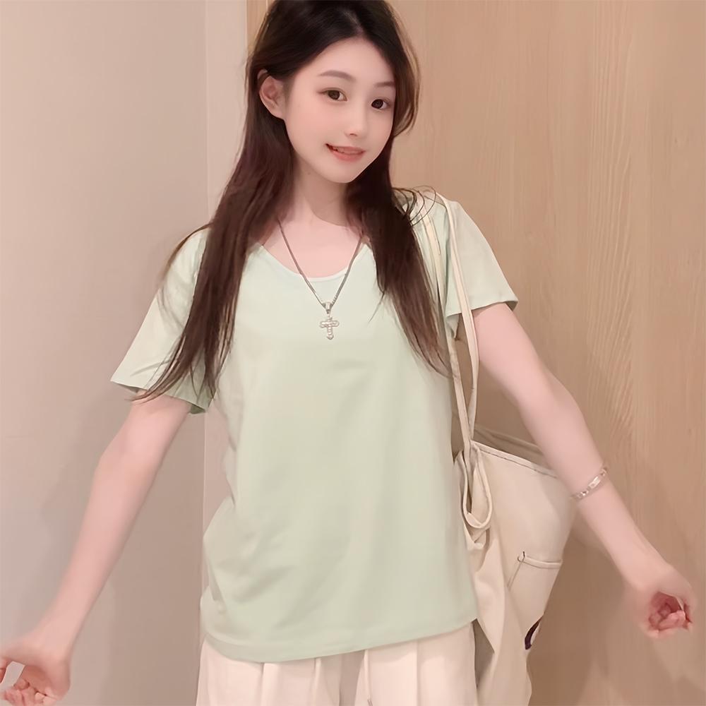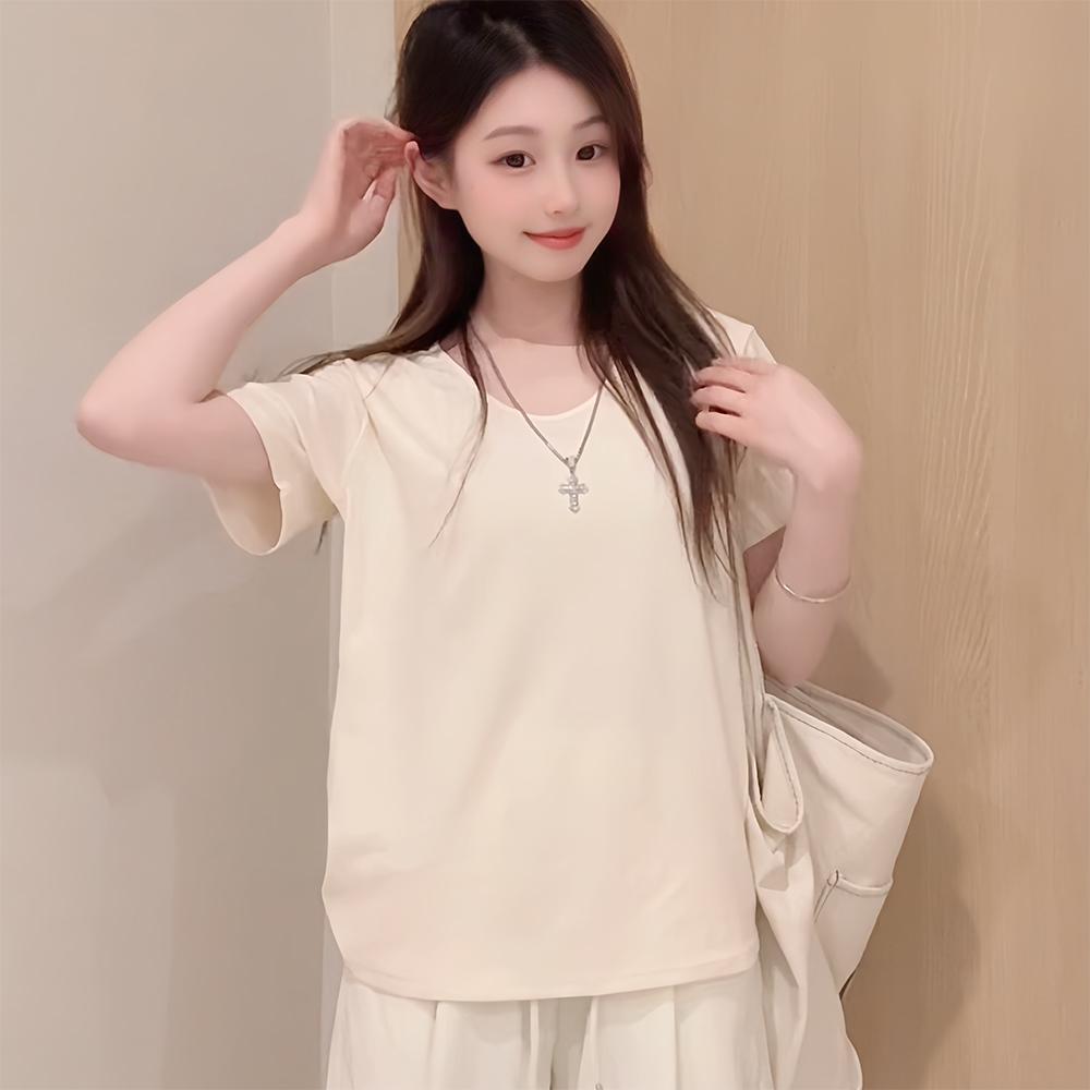 Camiseta Blanca de Hombro a la Moda para Mujer Verano Suelta Adelgazante Chic Casual Combinable Top Diseño Delgado