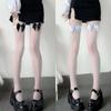 Calcetines largos de seda blanca pura con lazo japonés sexy de Lolita, suaves, por encima de la rodilla, de seda negra, para chica