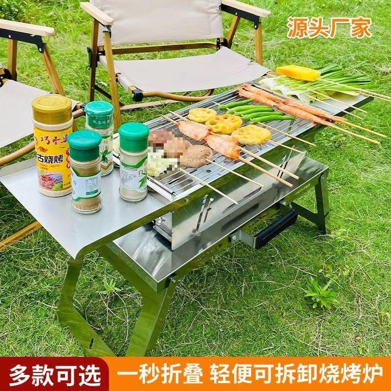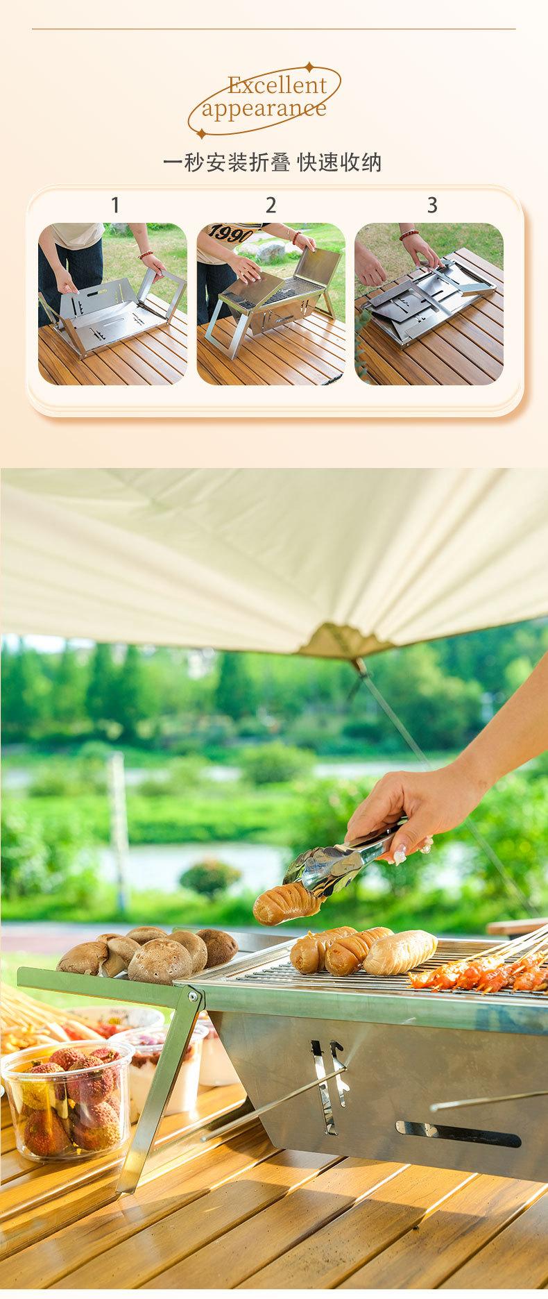 Estufa de Barbacoa Plegable de Acero Inoxidable para Hogar Exterior Carbón Asado Brochetas Sin Humo Portátil Jie Barbacoa Plegable Nuevo Estilo