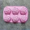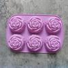 Molde de silicona para vela de aromaterapia con forma de flor rosa de 6 piezas, para chocolate, pastel, jabón, herramienta para hornear, molde DIY, herramienta abrasiva