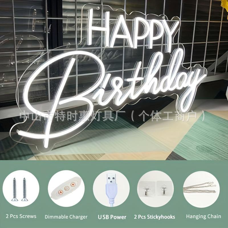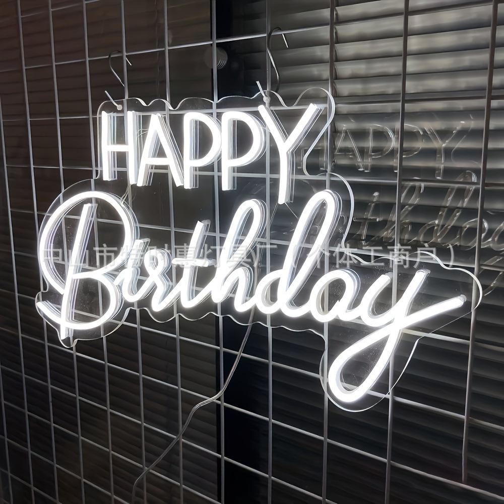 Letrero Publicitario de Luz Neón de Feliz Cumpleaños Transfronterizo Letrero de Luz LED de Feliz Cumpleaños Luz de Neón Caracteres Luminosos