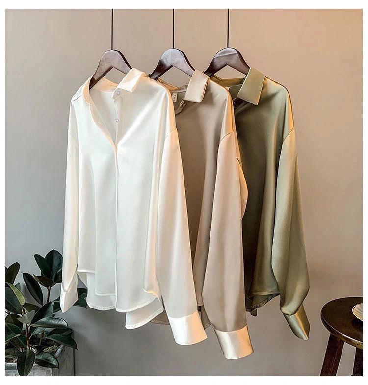 Compra 2025 Nueva Camisa de Satén para Mujer Primavera Diseño Estilo Hong Kong Nicho Top Manga Larga Satén Drapeado Camisa Estilo Occidental al por mayor en Joom.pro