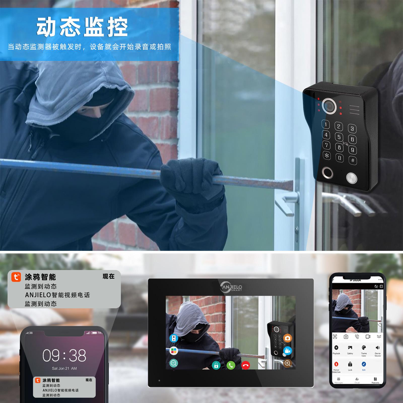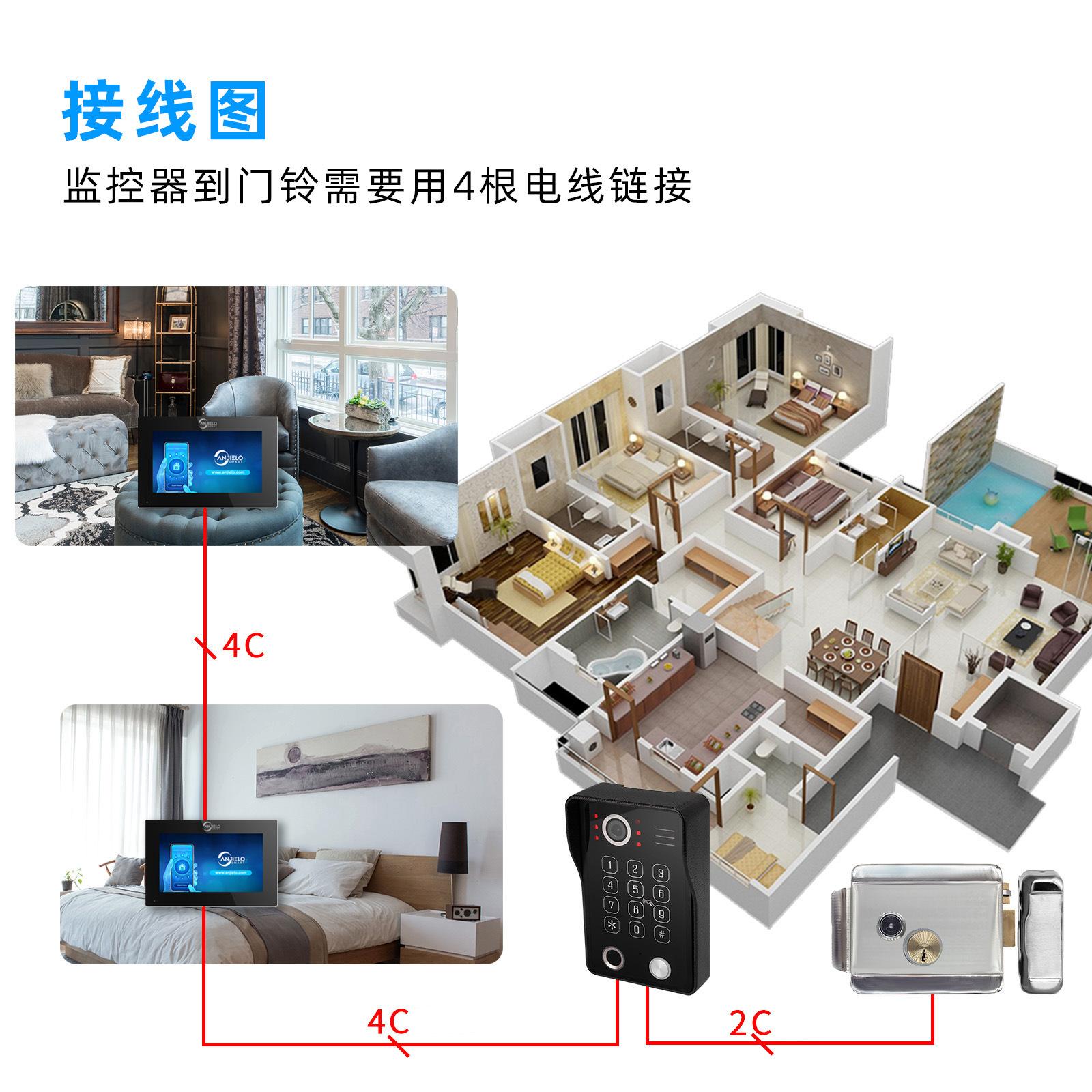 Tenga en cuenta que el sistema de videoportero wifi no significa que no requiera ningún cable. La pantalla admite red WIFI, pero la pantalla interior y el timbre son cableados.