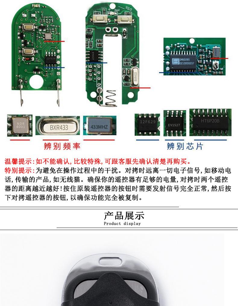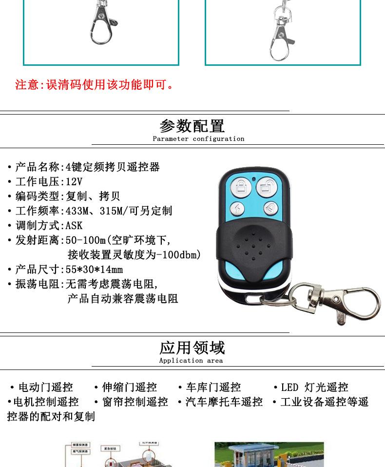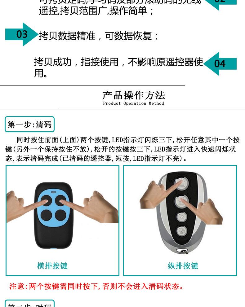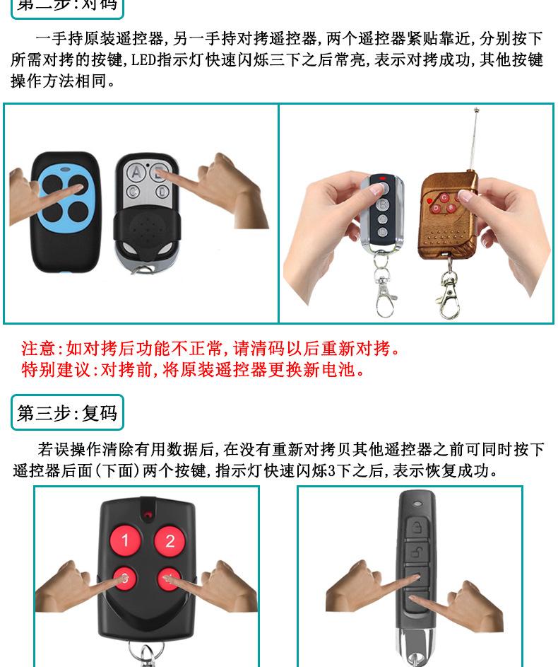 Can copy various types of wireless fixed code remote controls and learning code remote controls Such as electr...