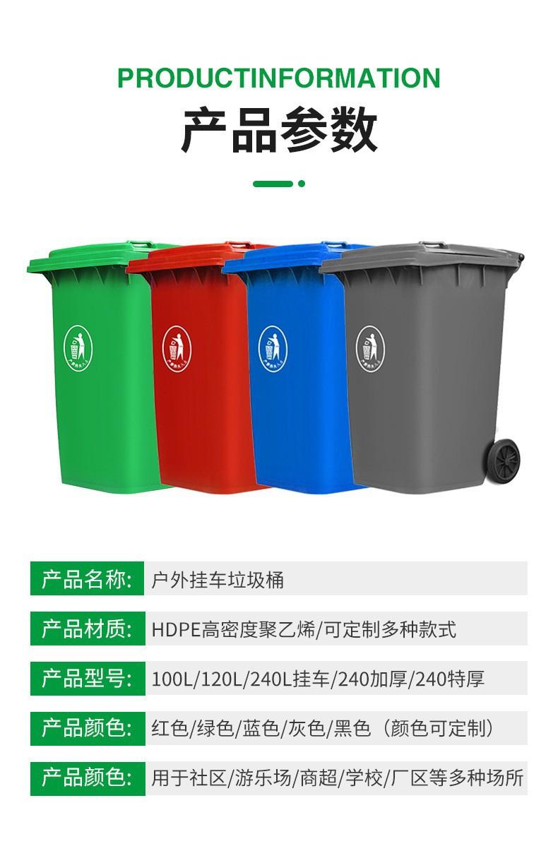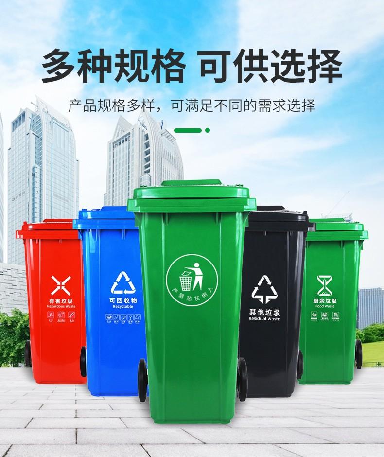 Bote de Basura para Exterior con Tapa Grande 240L Clasificación Sanitaria Plástico Engrosado con Ruedas 120L Fabricante de Botes de Basura Venta al por Mayor