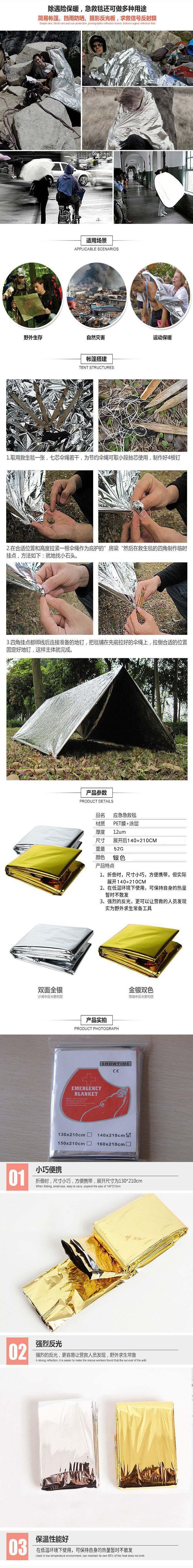 1.Después de un accidente, se puede usar una manta de emergencia para cubrir el cuerpo y prevenir una rápida disminución de la temperatura corporal;