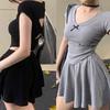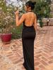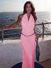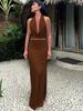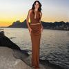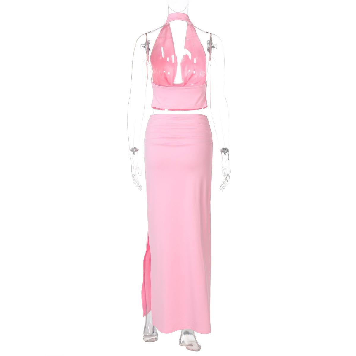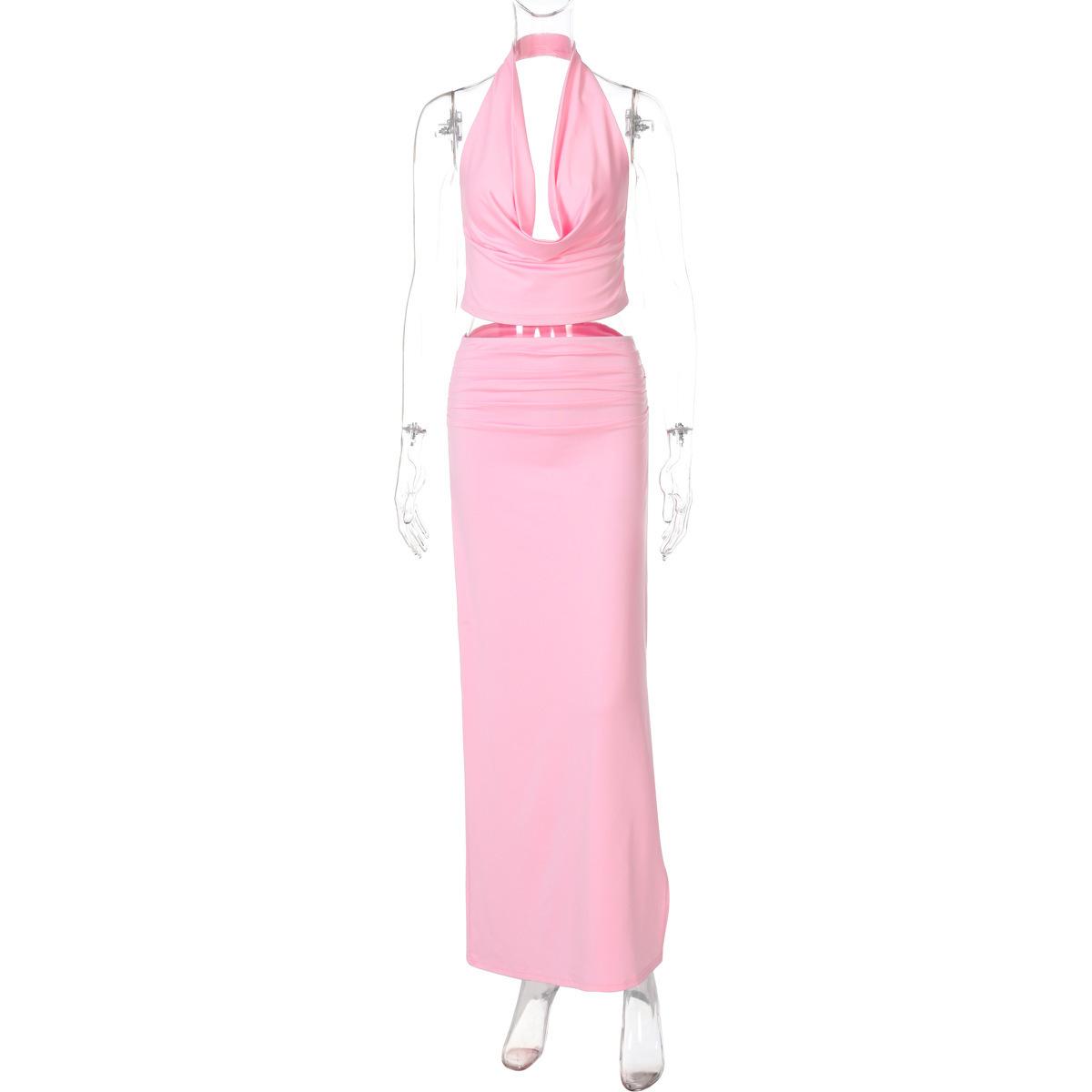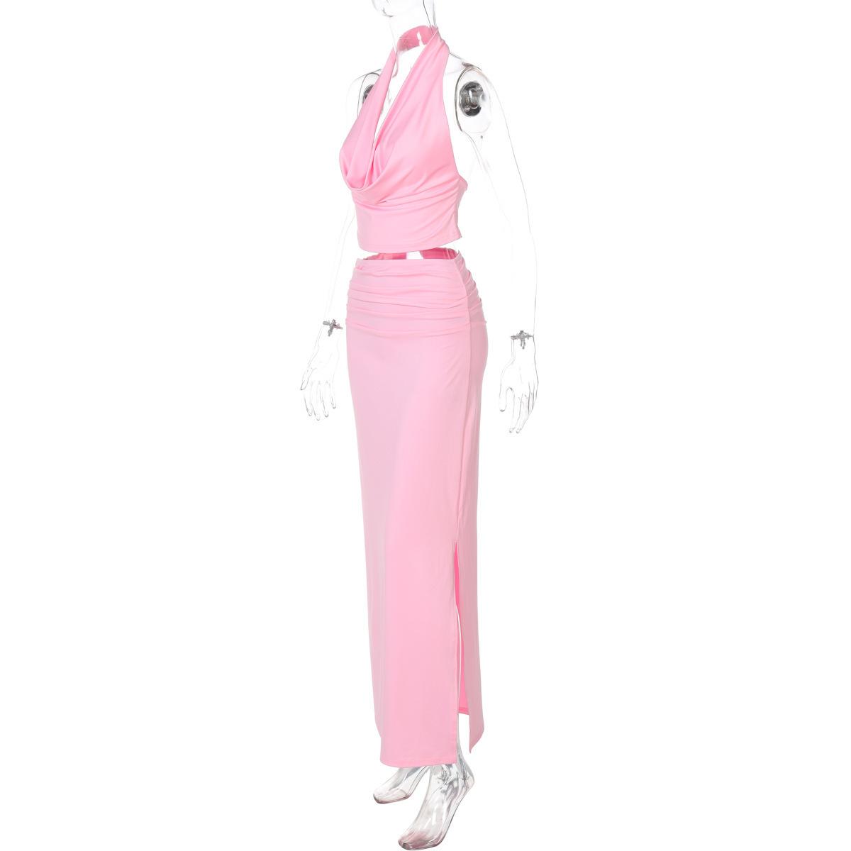 Verano Nuevo Elegante Francés Cuello Halter Espalda Descubierta Bolsillo Tirante Ajustado Un Paso Falda Larga Conjunto de Dos Piezas 2025 Venta al por Mayor