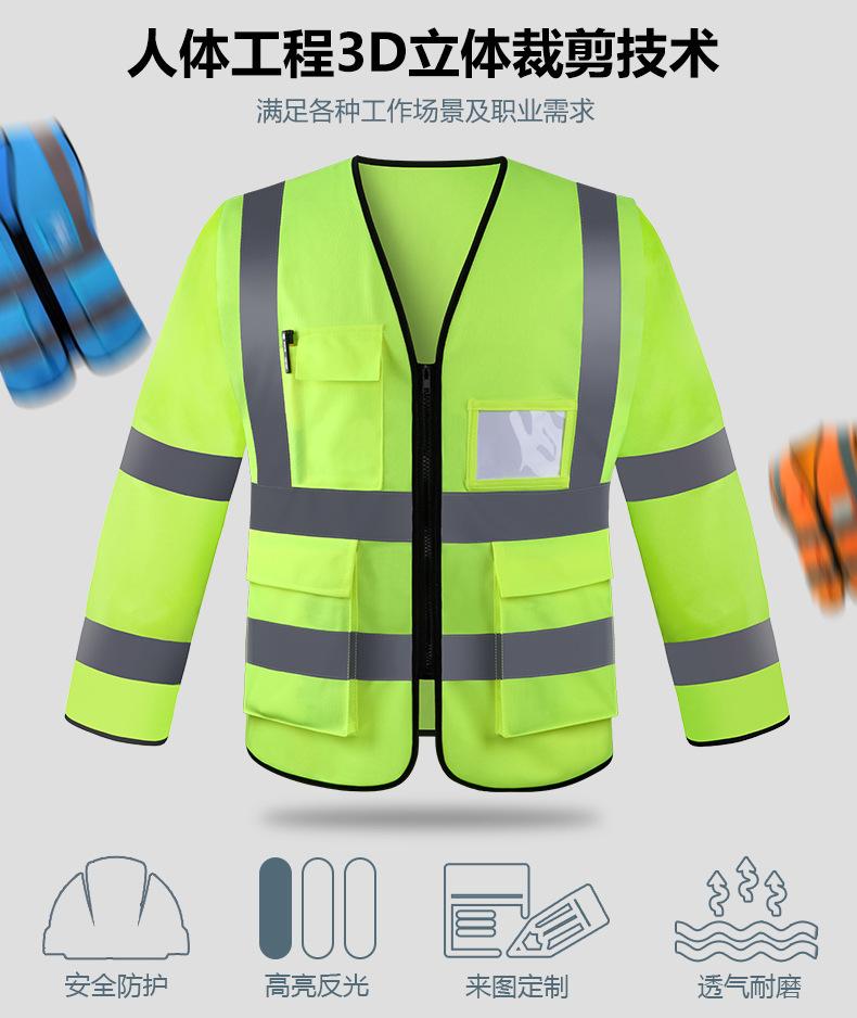 Fabricantes de chalecos reflectantes de manga larga, chalecos de construcción, chalecos fluorescentes de seguridad, ropa de trabajo para trabajadores de saneamiento.