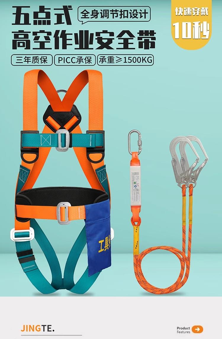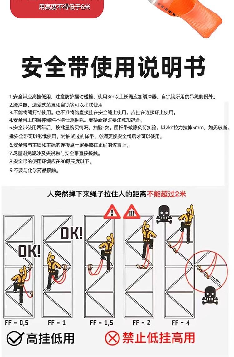 Cinturón de seguridad de cuerpo completo de cinco puntos, Cuerda de seguridad para trabajos en altura, Estándar nacional Cinturón anticaídas para instalación de aire acondicionado exterior con gancho