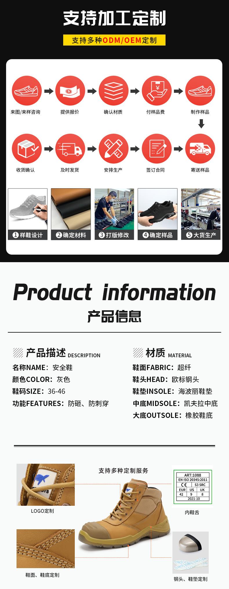 Zapatos de Protección Laboral Nuevos de Otoño e Invierno Personalizados, Zapatos de Trabajo Anti-Impactos y Anti-Perforación, Punteras de Acero, Zapatos de Seguridad Altos para Hombre Transfronterizos