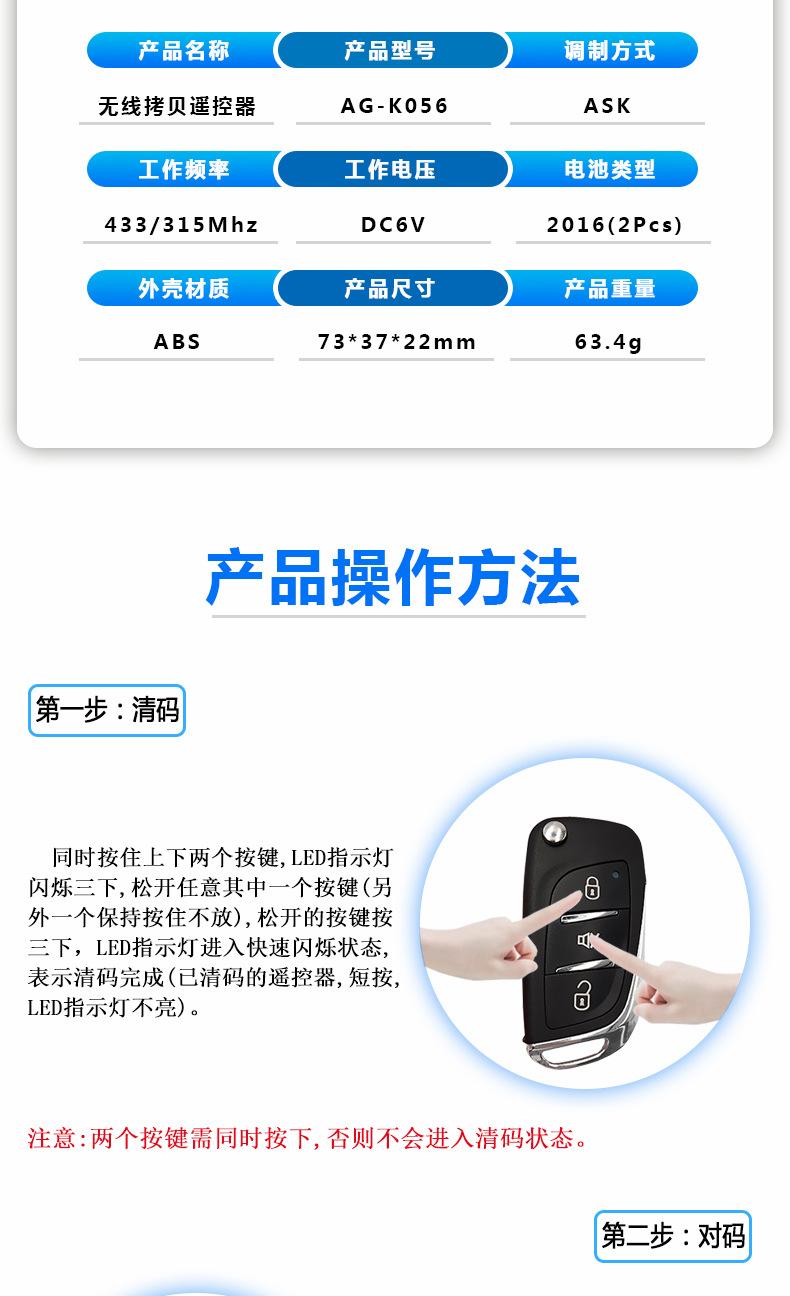 Puerta de Garaje Plegable con Pieza Clave Control de Acceso de Puerta Eléctrica Control Remoto de Copia de Tres Botones Control Remoto Inalámbrico 433
