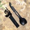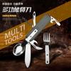 Cuchillo, tenedor y cuchara multifuncionales de acero inoxidable portátiles para viaje, exterior, supervivencia, primeros auxilios, utensilios de cocina para camping, abridor de botellas, llave inglesa, tenedor para pescado