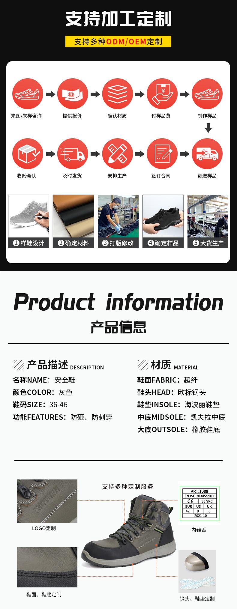 Zapatos de Protección Laboral Personalizados para Otoño e Invierno, Zapatos de Trabajo Anti-Impactos y Anti-Perforación, Punteras de Acero, Zapatos de Seguridad de Caña Alta para Hombre al Mayoreo
