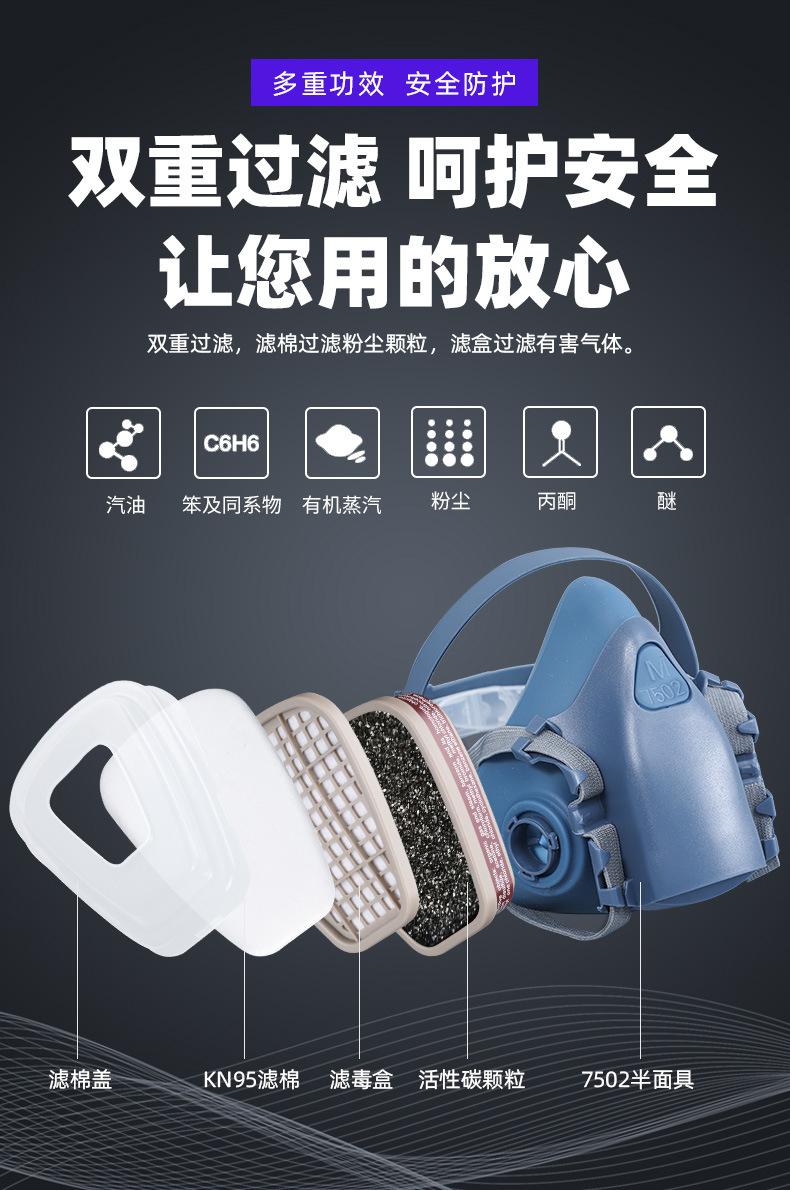 7502 gas mask + comprehensive filter box (anti-against a variety of gases) + 10 pieces of cotton, 15-piece set