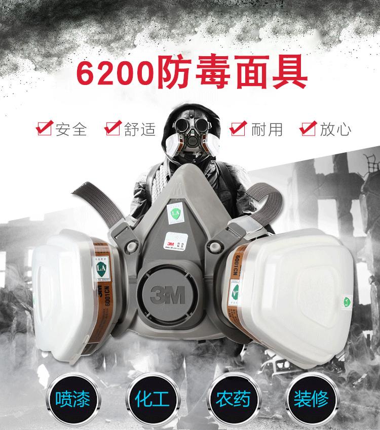 3m6200 media máscara caja de filtro doble máscara de goma experimento químico Protección 3m productos protectores mayoreo ancho