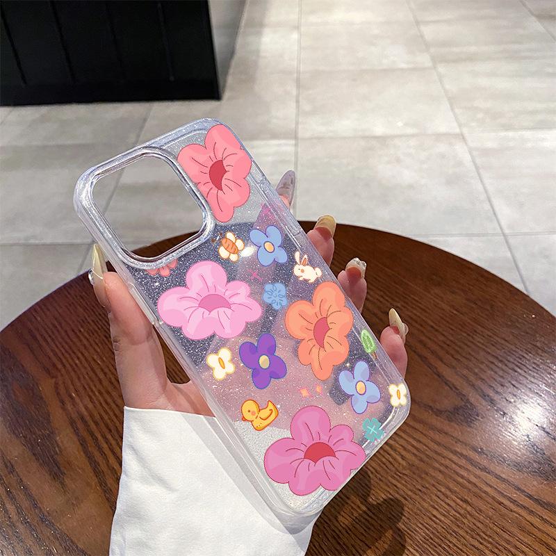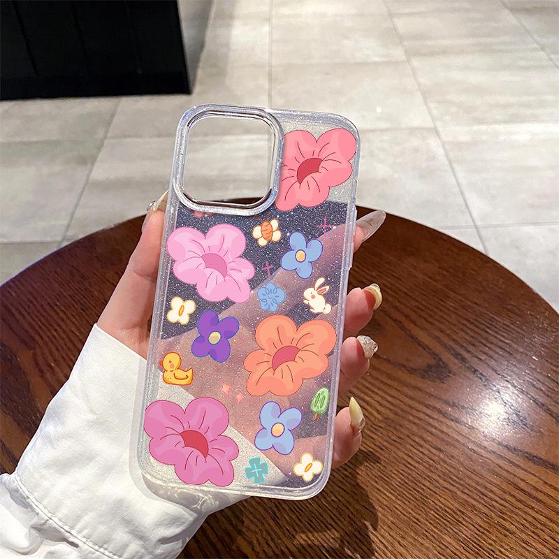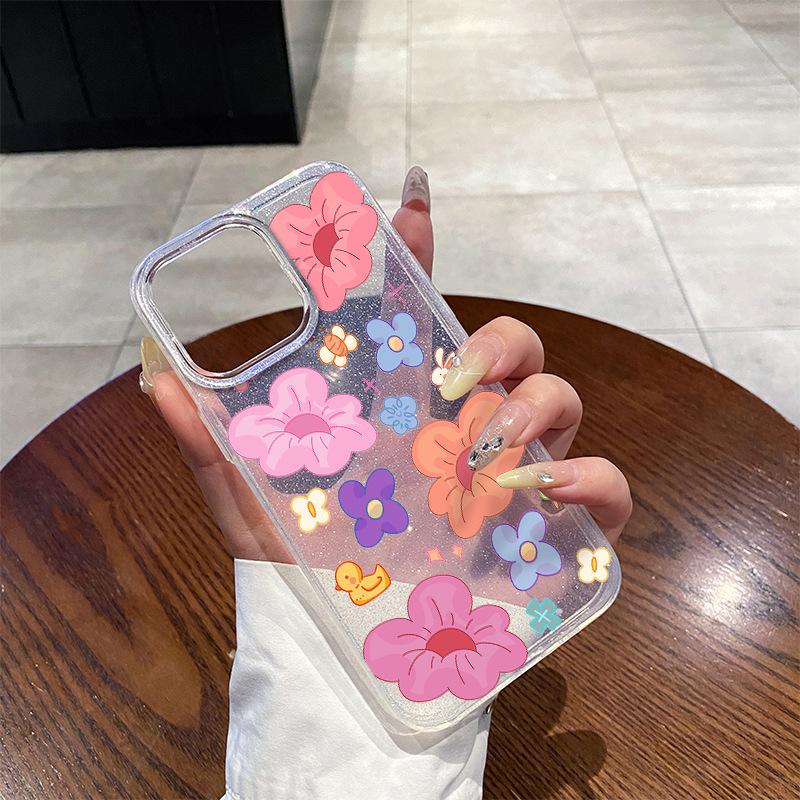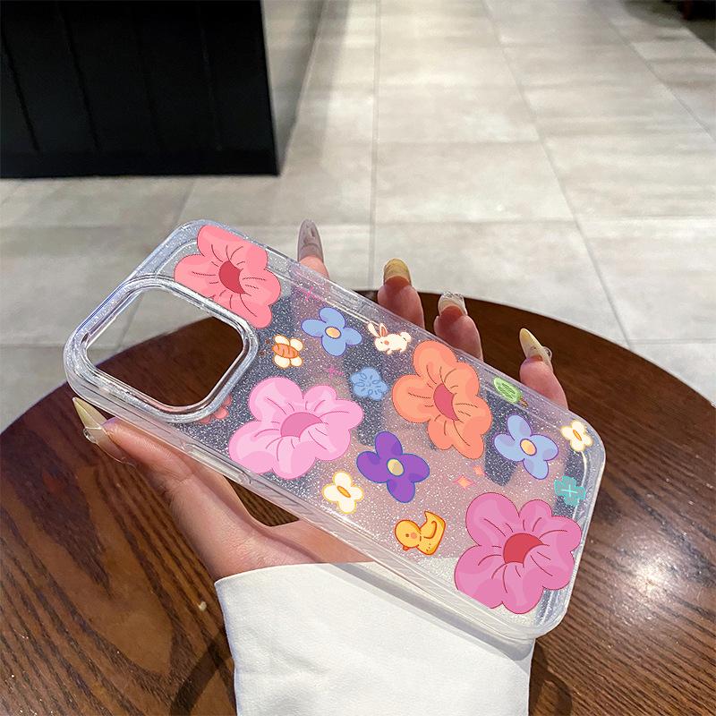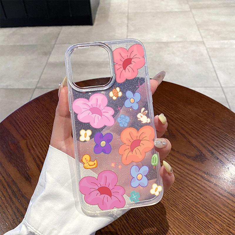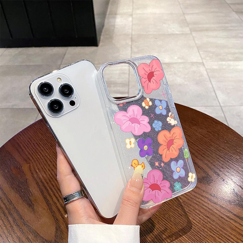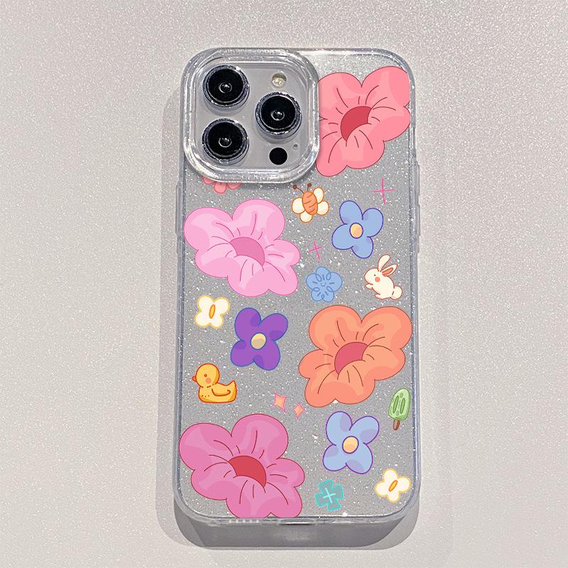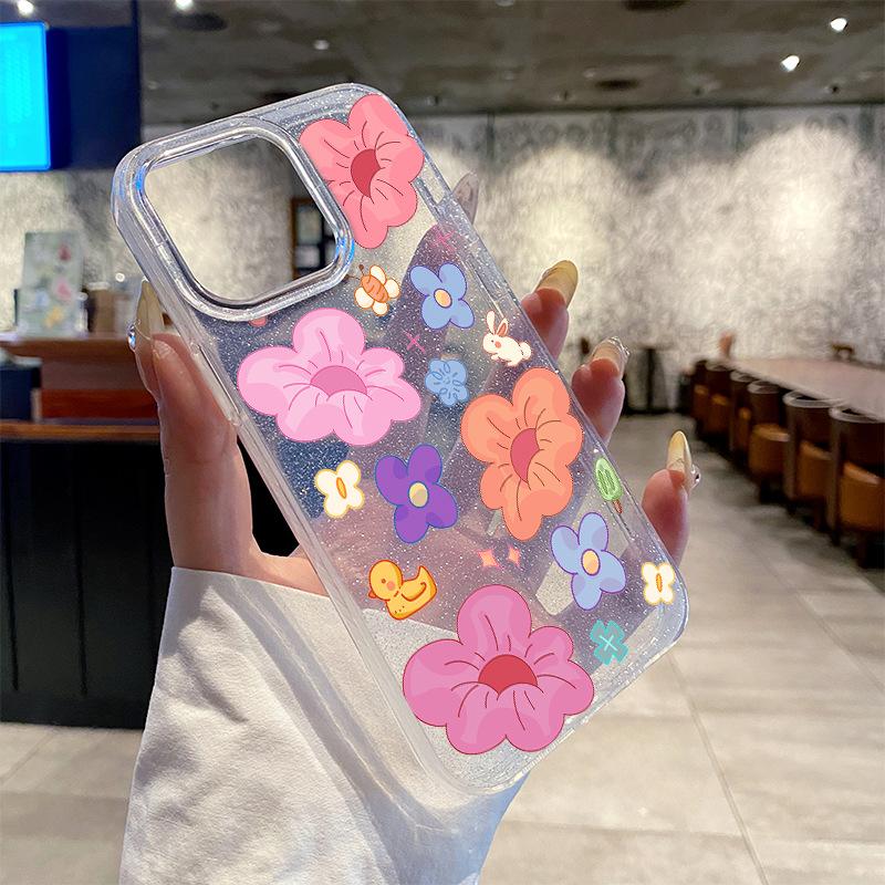 Funda para Teléfono con Brillo para Apple 14 Pro Max, iPhone 15 Floral Colorido para Mujeres, Modelo Nuevo 16, Funda Dura a Prueba de Golpes 12, Transparente