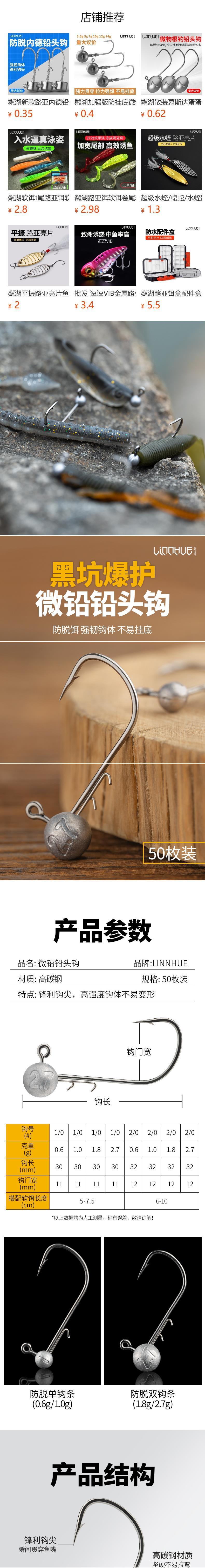 0.6g 2/0#Hook [order each specification in 50 or multiples of 50], 1g 2/0#Hook [order each specification in 50...