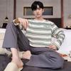 Pijama de Algodón Puro para Hombre Primavera y Otoño Nuevo Manga Larga Juvenil Otoño e Invierno Delgado Sencillo Cárdigan Traje Casual para Estar en Casa