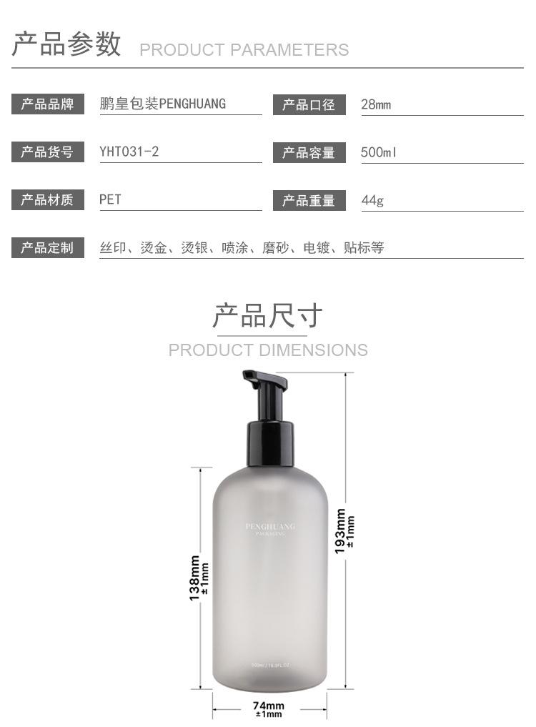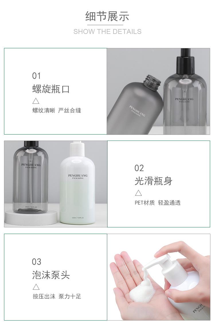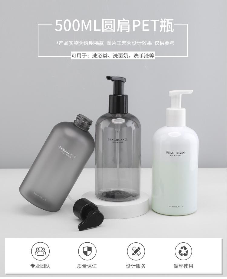 Botella de Plástico para Espuma de 500 ml Presionar Espumante Botella de Gel de Ducha Pet Hombro Redondo Botella de Espuma para Desinfectante de Manos Fabricante Personalización