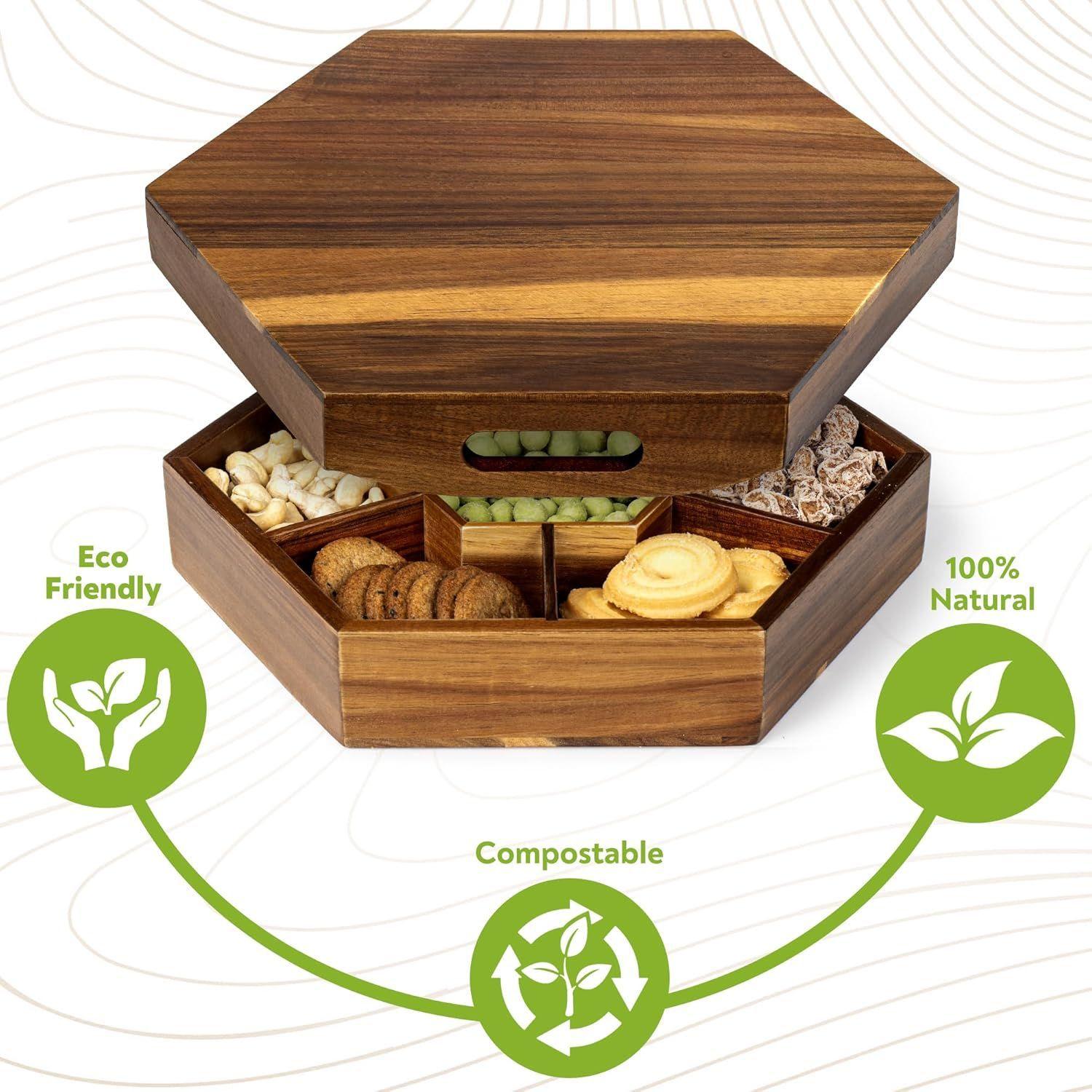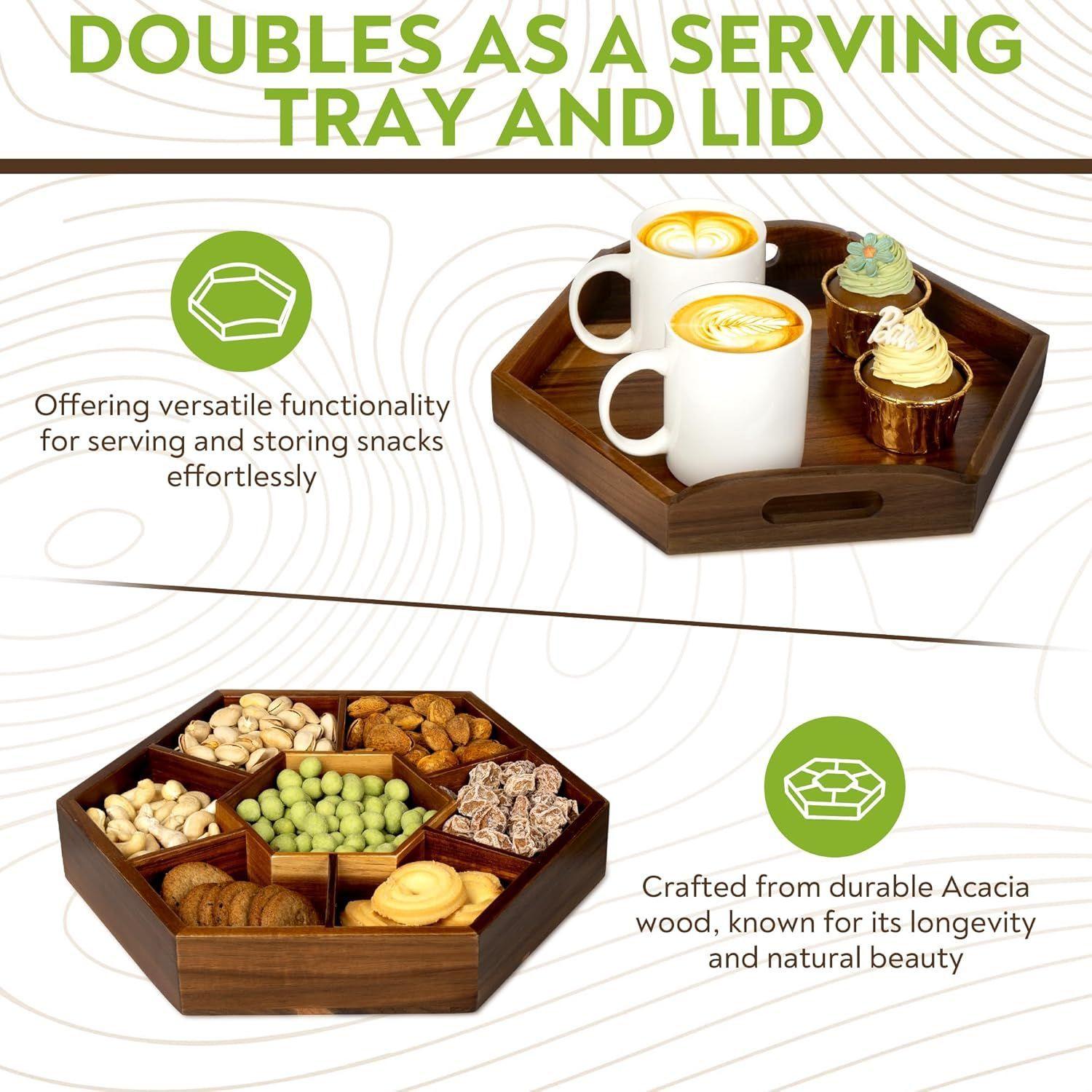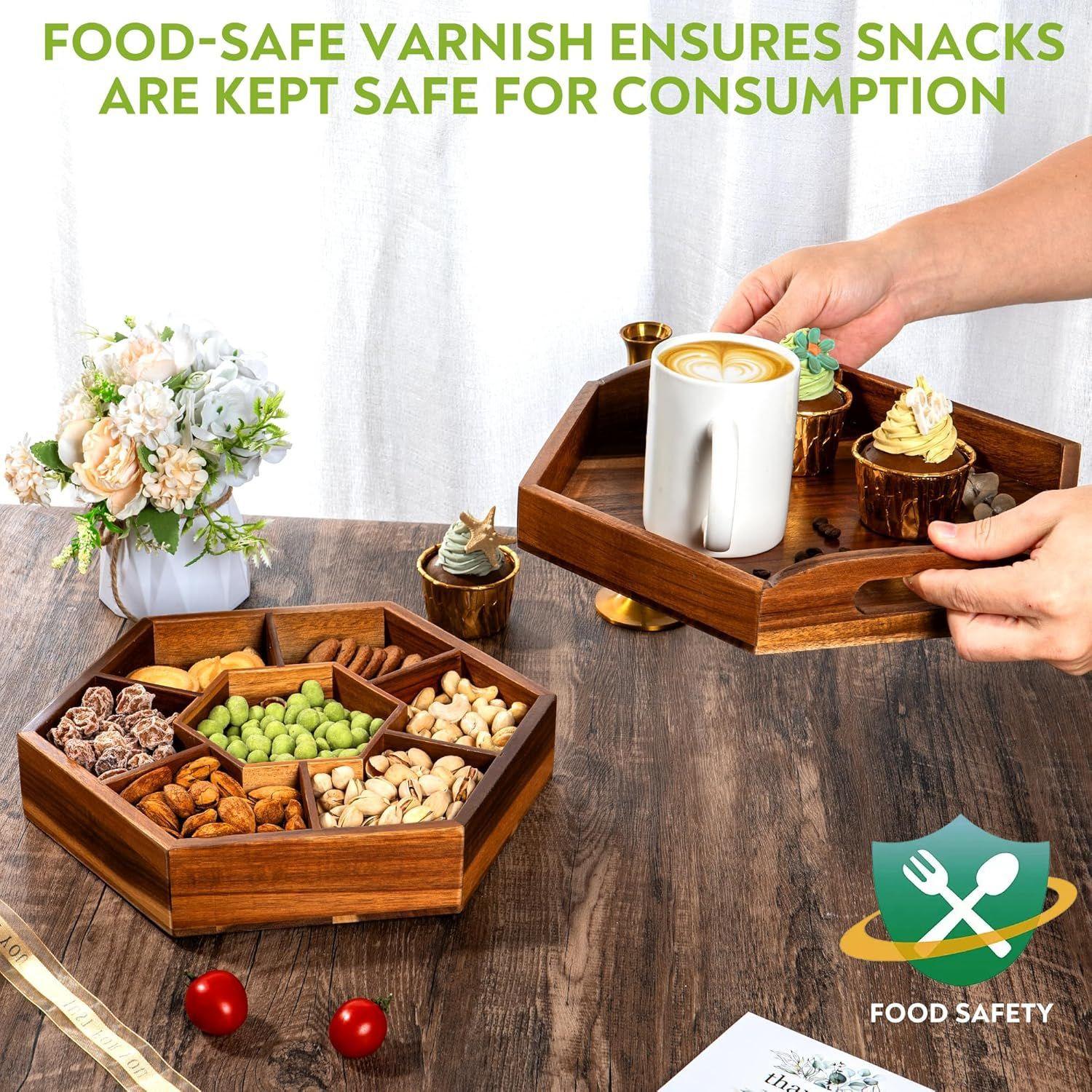 Caja de Madera para Snacks, Bandeja de Almacenamiento para Frutos Secos y Nueces, Caja de Almacenamiento Decorativa Dividida para Mesa de Centro, Caja Decorativa de Madera para Snacks Personalización