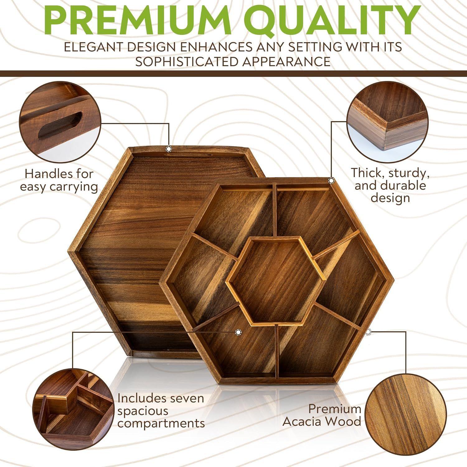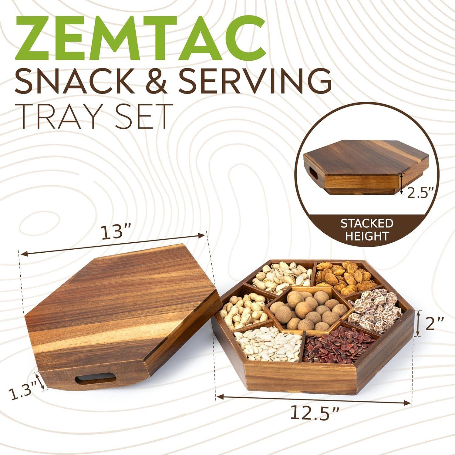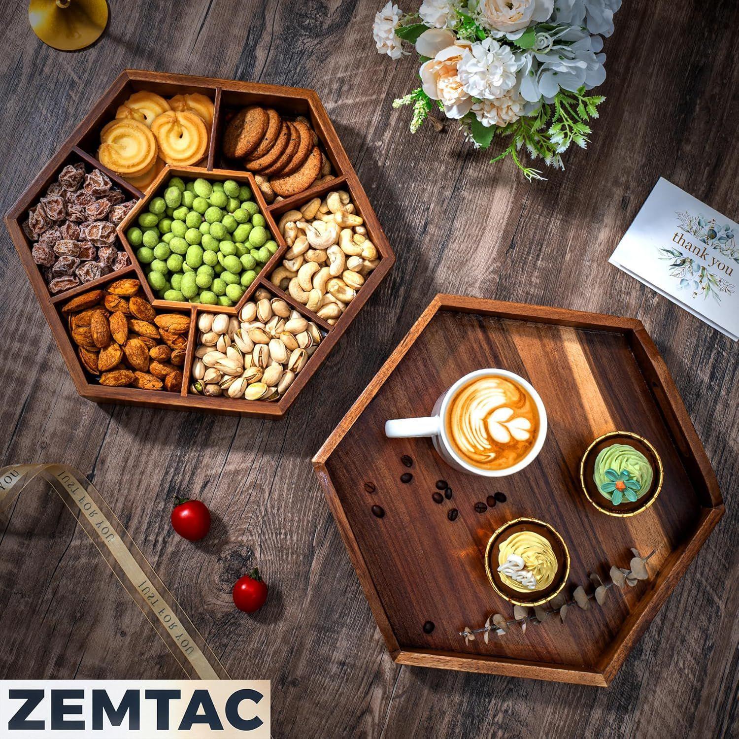 Caja de Madera para Snacks, Bandeja de Almacenamiento para Frutos Secos y Nueces, Caja de Almacenamiento Decorativa Dividida para Mesa de Centro, Caja Decorativa de Madera para Snacks Personalización