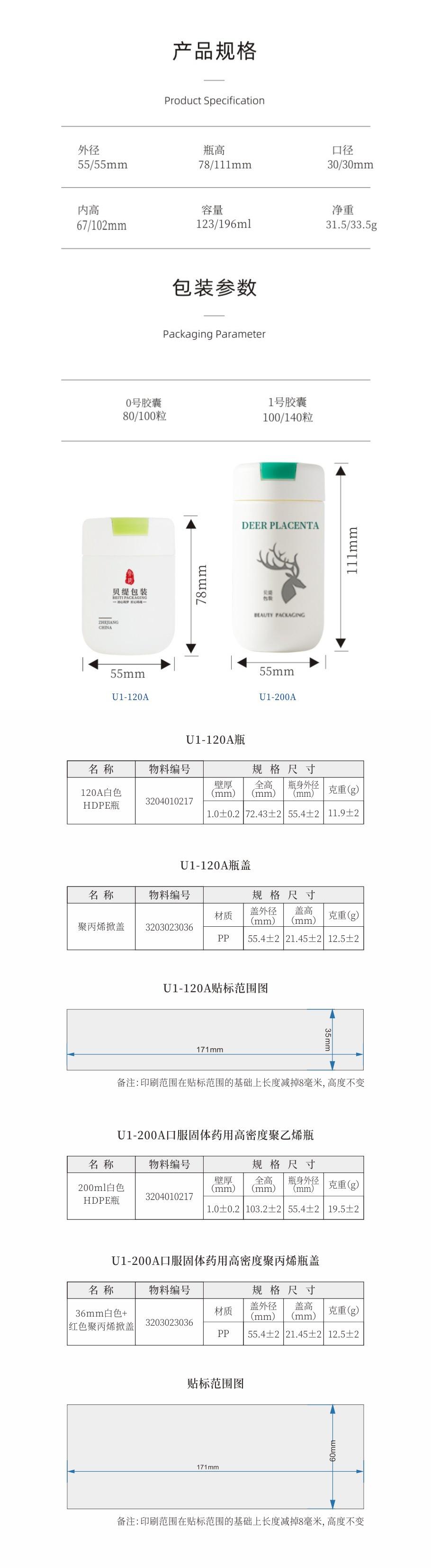 | U1-200A | 55 x 111 mm | 30 mm | 102 mm | 196 ml | |
